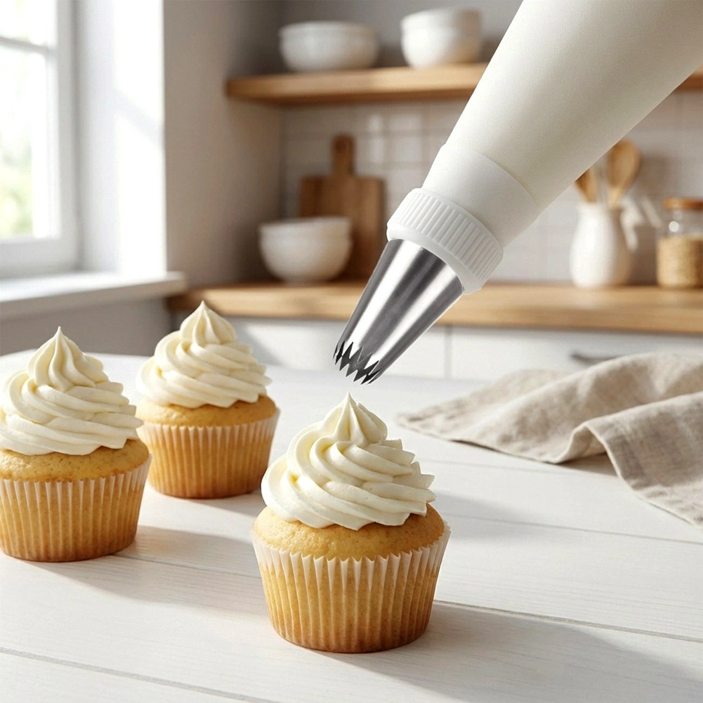 Praktická cukrárska tylka s otvorenou hviezdou na jednoduché a efektné zdobenie tort, koláčov a cupcakeov. Vyrobená z nehrdzavejúcej ocele, je odolná, zdravotne nezávadná a vhodná do umývačky riadu. Kompatibilná so všetkými cukrárskymi vreckami a zvládne krásne rozetky, hviezdičky a vlnky bez námahy.