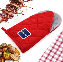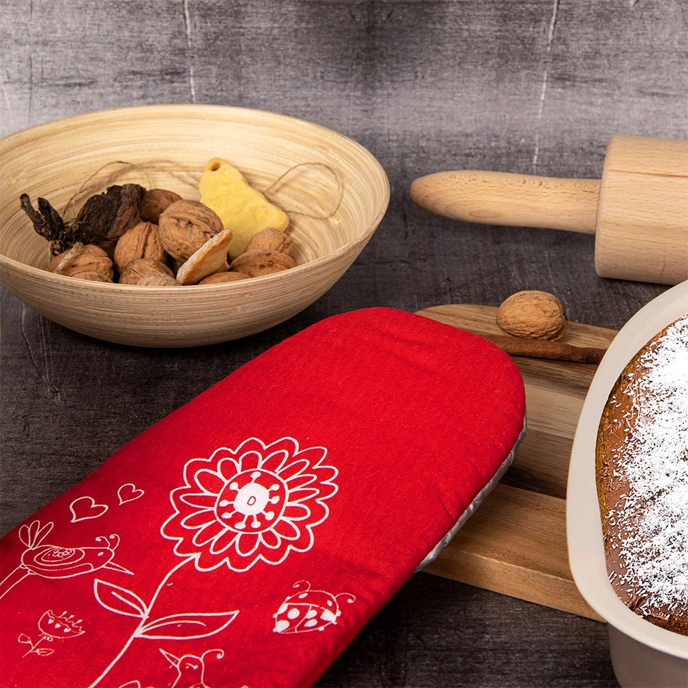 Táto červená kuchynská rukavica kombinuje atraktívny vzhľad s vysokou funkčnosťou. Vonkajšiu časť z odolného polyesteru dopĺňa bavlnená úchopová plocha s teflónovou povrchovou úpravou, ktorá zaisťuje spoľahlivú tepelnú ochranu pri varení aj pečení. Rukavica dobre prilieha k ruke a uľahčí bezpečné prenášanie horúcich plechov, pekáčov a hrncov.