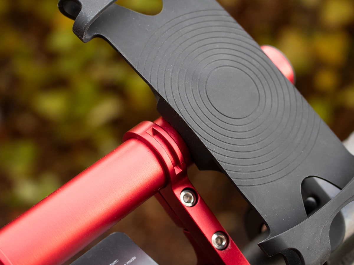 Dvojitá objímka s vnútornými vložkami a skrutkami zaistí stabilitu aj na nerovnostiach, bez pretáčania a nežiaducich vibrácií.