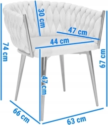 Dekoratívny splietaný vzor na operadle pôsobí ako ručné prešívanie a dodáva stoličke výnimočný, exkluzívny charakter.