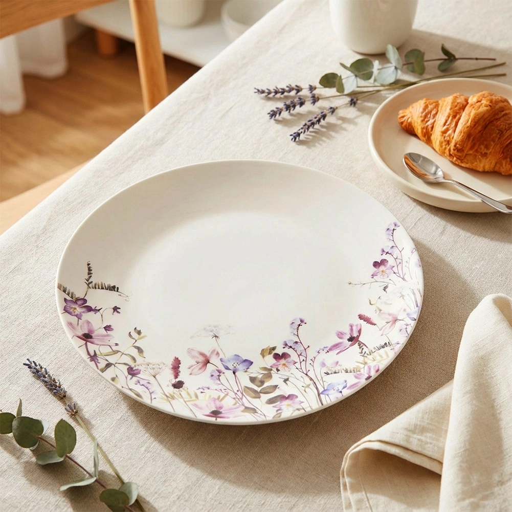 Elegantný porcelánový dezertný tanier s priemerom 20,5 cm s motívom lúčnych kvetov. Ideálny na zákusky, desiaty aj raňajky. Vhodný do umývačky aj mikrovlnky, vyrobený z kvalitného porcelánu a ladí s každým prestieraním stola.