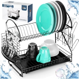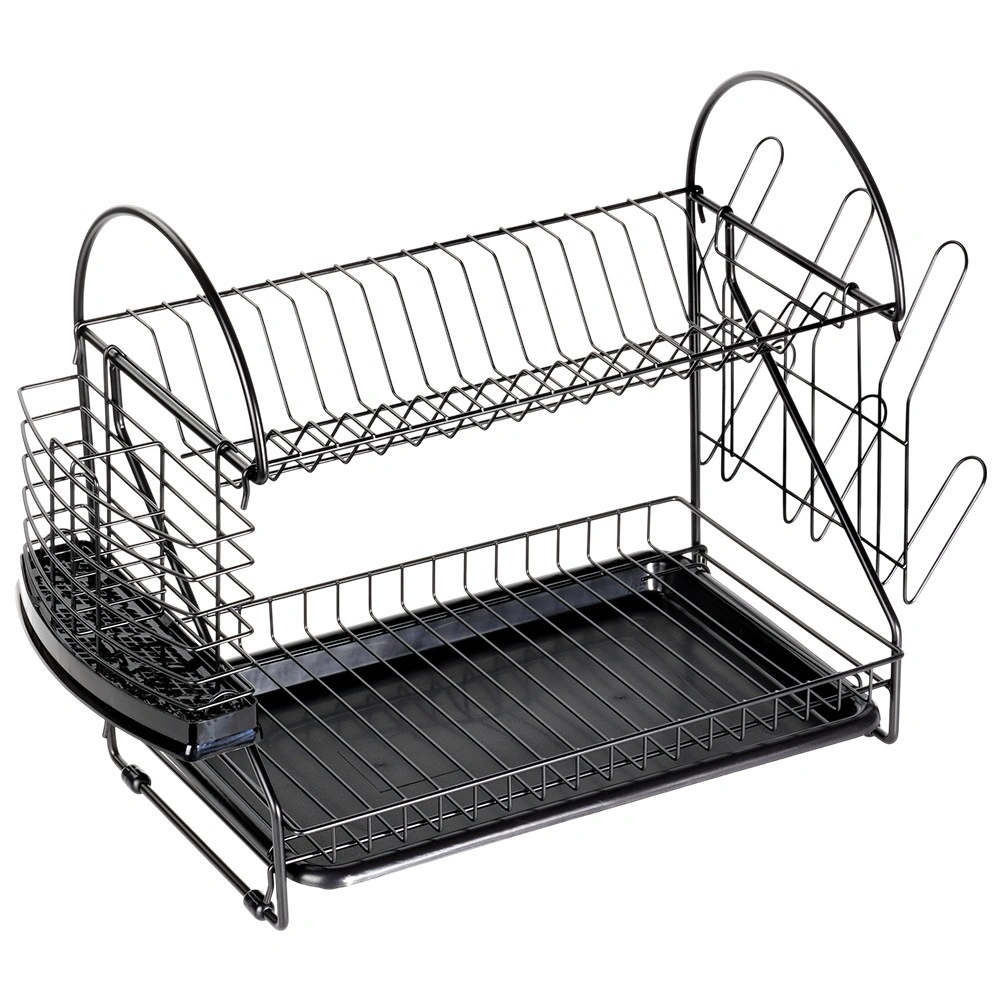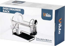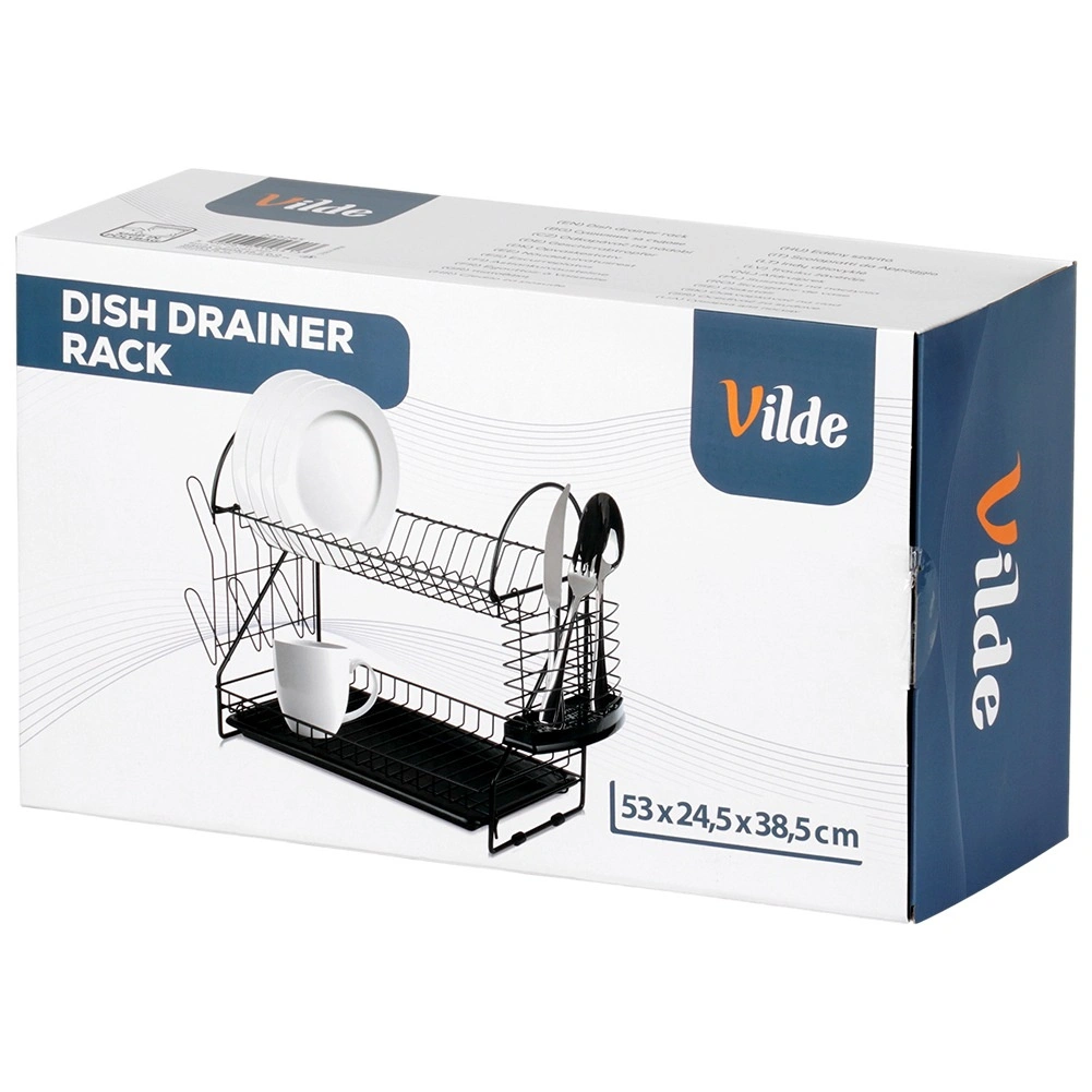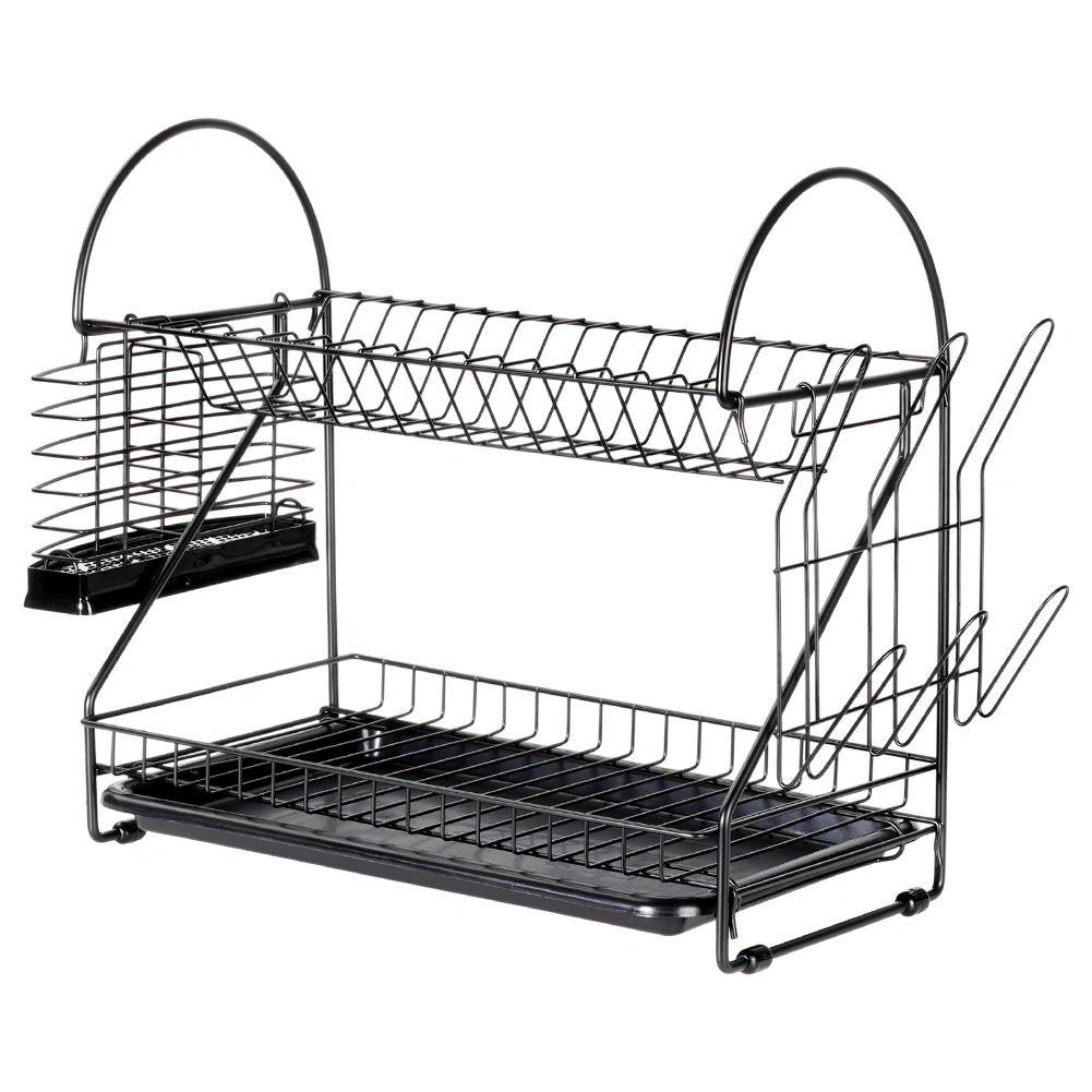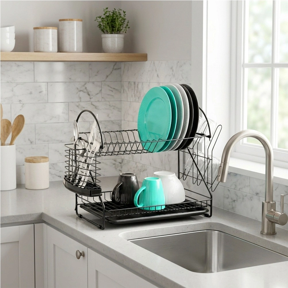 Maximalizujte priestor pri dreze s odkvapkávačom, ktorý kombinuje dve úrovne sušenia, šikovné doplnky a moderný industriálny vzhľad. Robustná kovová konštrukcia v matnej čiernej spolu s vyberateľným plastovým táckom zachytí kvapky a ochráni kuchynskú dosku pred vlhkosťou.