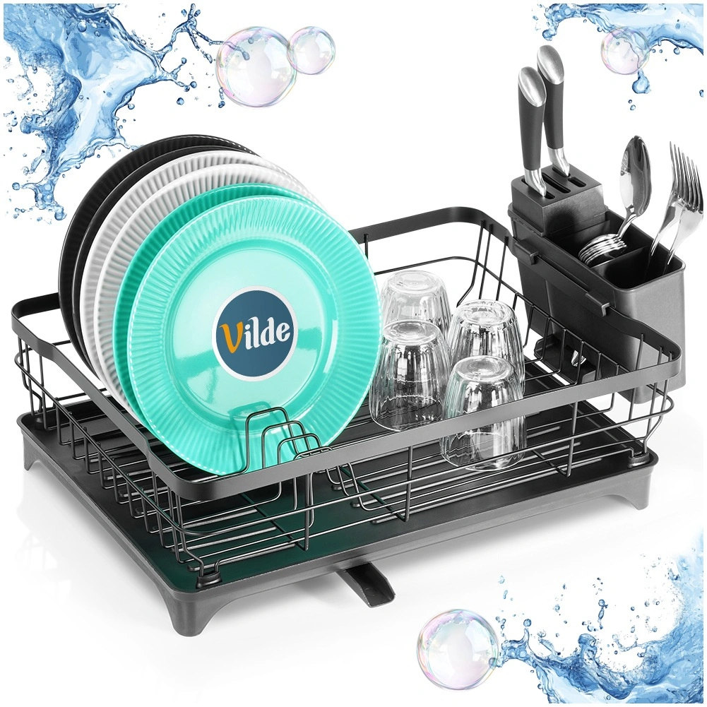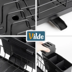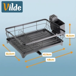 Integrovaná výlevka v miske zabezpečuje kontrolovaný odtok vody priamo do drezu, takže pracovná plocha zostáva bez mokrých stôp. Odkvapkávač sa hodí do každej kuchyne – od modernej po klasickú – a vďaka jednoduchej údržbe šetrí čas každý deň. Originálny produkt značky VILDE, vyrobený v súlade s európskymi štandardmi.