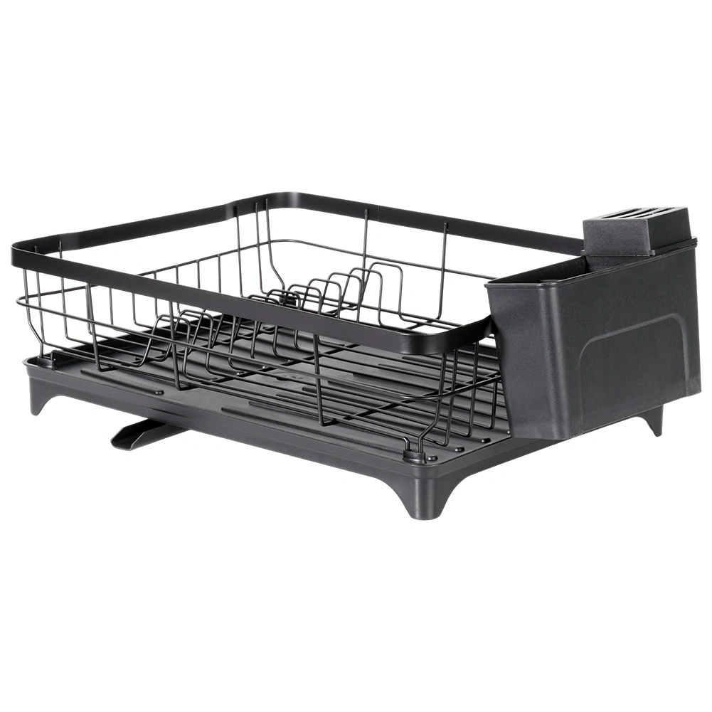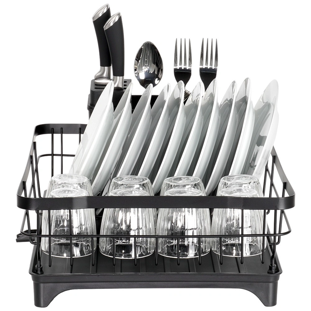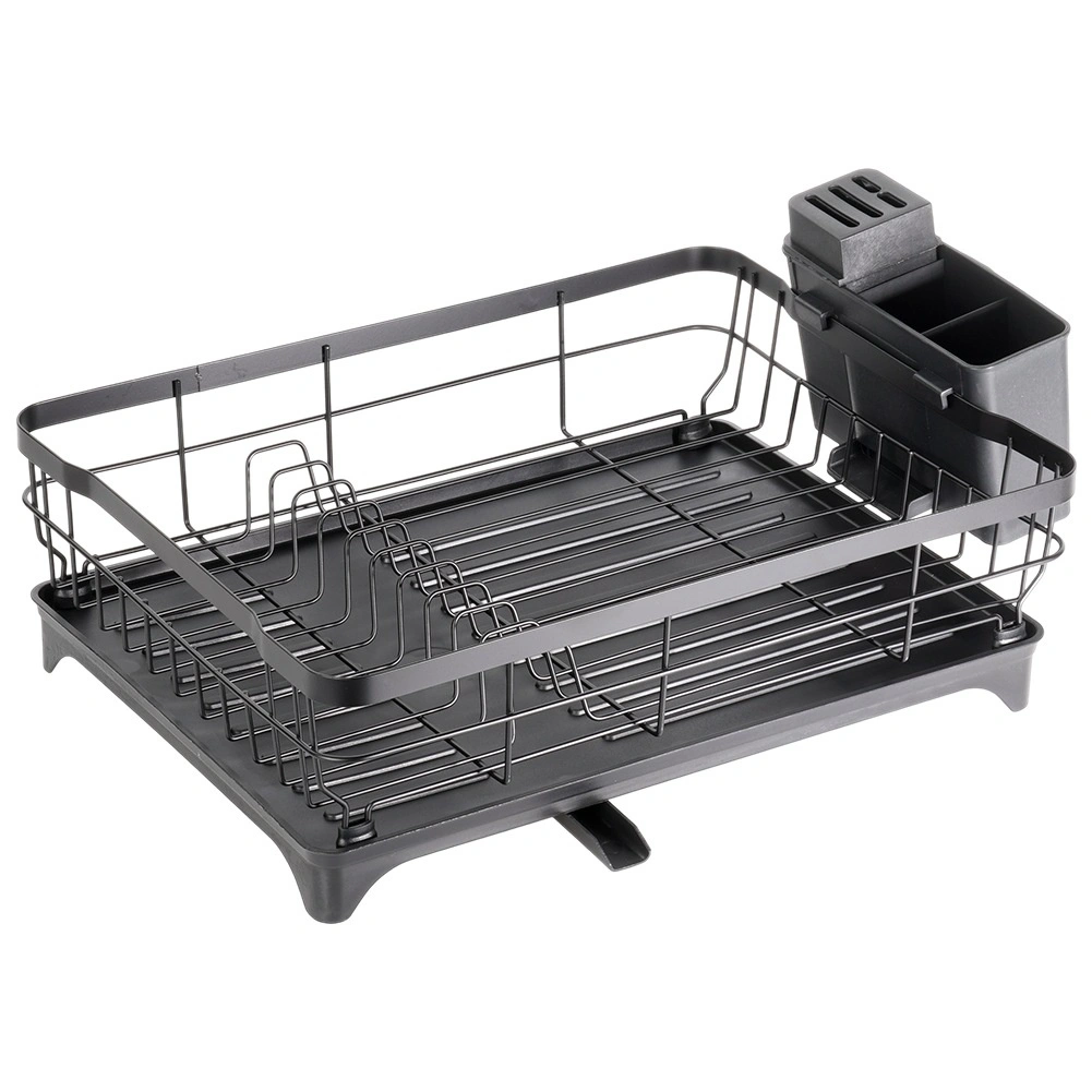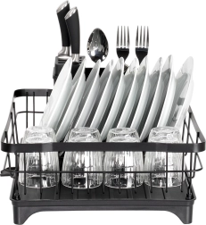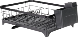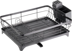 Odolný čierny kov pojme až 10 tanierov, poháre a misky. Zvýšené okraje zabezpečujú stabilitu a bezpečné ukladanie riadu.
