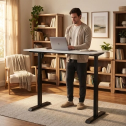 Moderný elektrický stôl pre zdravé sedenie aj státie s rozsahom výšky 76–121 cm. Ponúka plynulé elektrické nastavenie, ovládací panel s 3 pamäťovými pozíciami, tichú prevádzku <50 dB a praktické doplnky ako držiak na slúchadlá a nastaviteľné nožičky na perfektné vyrovnanie. Ideálny pre home office, kanceláriu aj chôdzu na walking pade.