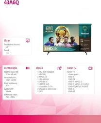 Užite si domáce kino so 43‑palcovým QLED televízorom, ktorý ponúka živé farby, vysoký kontrast a štíhly bezrámčekový dizajn. Vďaka podpore HDR (napr. Dolby Vision) a širokej konektivite si vychutnáte filmy, seriály aj hry v detailnom obraze a s plynulým chodom smart aplikácií.