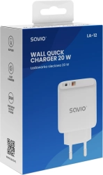 SAVIO LA-12 je univerzálna nabíjačka do siete s maximálnym výkonom 20 W, ktorá skracuje dobu nabíjania vašich smartfónov, tabletov a slúchadiel. Kombinácia USB-C PD 3.0 a USB-A QC 3.0 zabezpečuje optimálnu rýchlosť pre širokú škálu zariadení a inteligentne prispôsobí výkon, aj keď váš telefón rýchle štandardy nepodporuje.