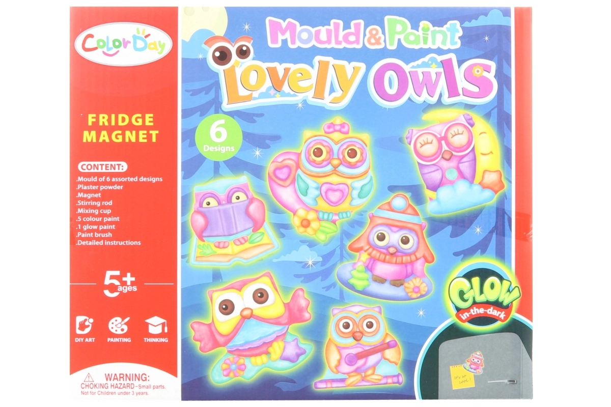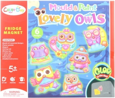 Kreatívna sada pre deti, s ktorou si ľahko vyrobia vlastné magnetky v tvare sovičiek, ktoré svietia v tme. Balenie obsahuje všetko potrebné – sadro, formu so 6 motívmi, farby, štetec, magnety a návod. Ideálna zábava pre deti od 5 rokov a skvelý darček pre malých tvorcov.