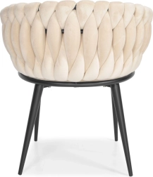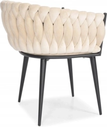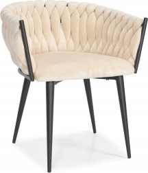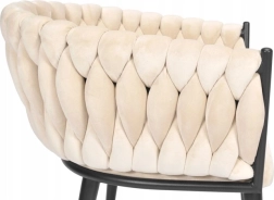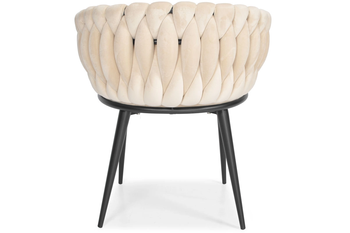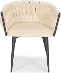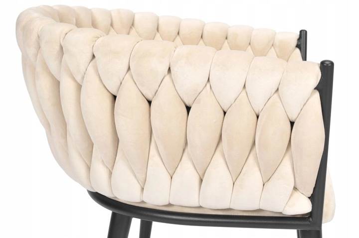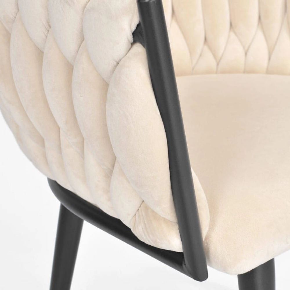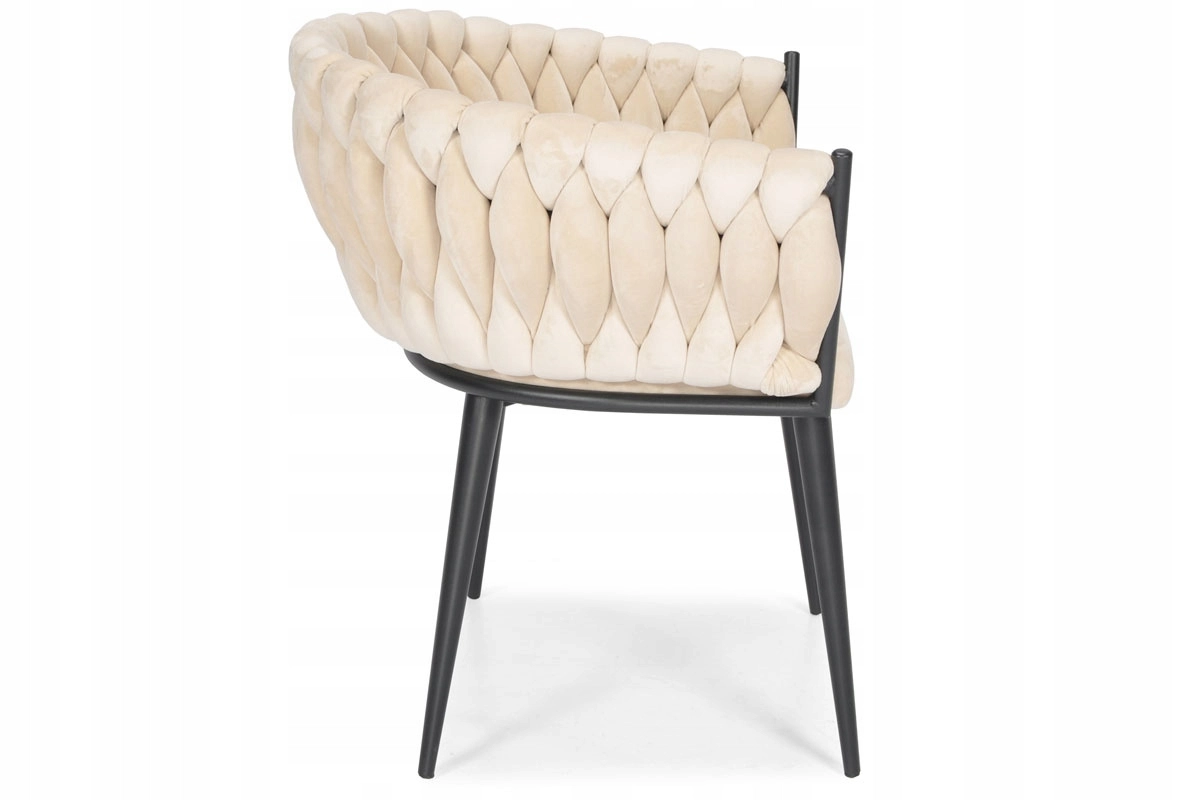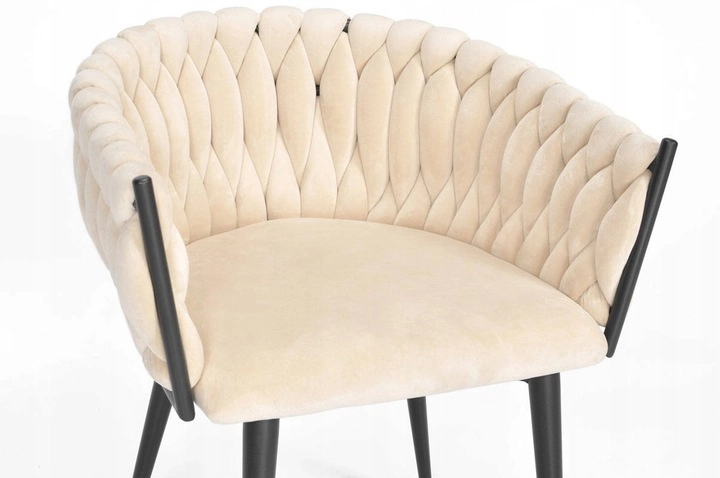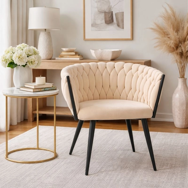 Objavte ikonické kreslo, ktoré okamžite pozdvihne váš interiér. Mäkký zamat v teplom béžovom odtieni jemne odráža svetlo a jednoducho sa kombinuje s bielou, čiernou aj drevom. Čierne kovové nohy zabezpečujú odolnosť a zároveň podčiarkujú moderný charakter.