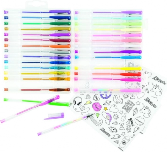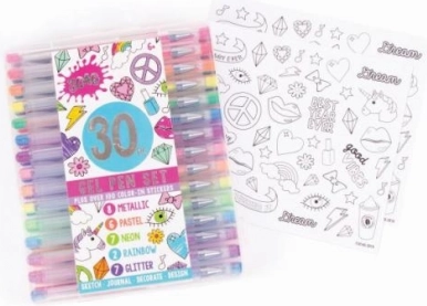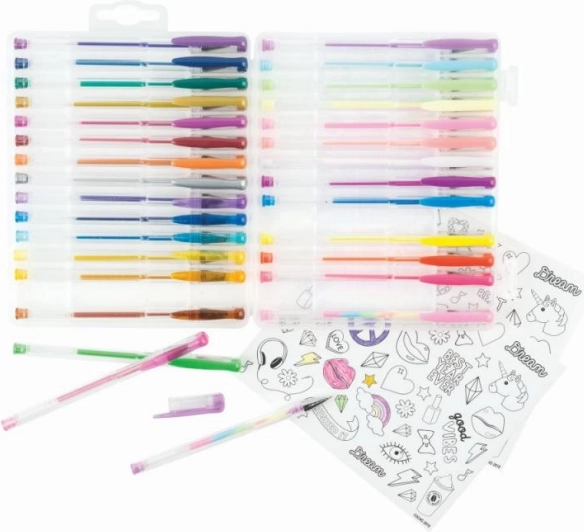 Táto sada obsahuje širokú paletu štýlov od metalických po dúhové perá, uspokojí všetky vaše potreby.