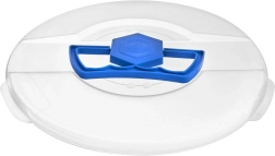 - polopriesvitné plastové veko (biele) so sklápacou modrou rukoväťou