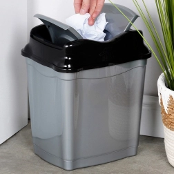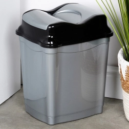 Praktický odpadkový kôš s objemom 16 litrov v sivej farbe s lesklým čiernym výklopným vekom je ideálny do kuchyne, kúpeľne, domácej kancelárie aj čakární. Odolný plast zaručuje dlhú životnosť a nízku hmotnosť, takže sa s košom ľahko manipuluje a jednoducho sa udržiava v čistote.