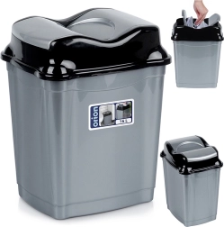 Kompaktný plastový kôš na odpad s objemom 16 l s ľahko ovládateľným výklopným vekom pre čistú a pohodlnú prevádzku doma aj v kancelárii. Vďaka odolnému materiálu je kôš ľahký, stabilný a ľahko sa čistí. Kompaktné rozmery umožnia umiestnenie na podlahu, na pracovnú dosku alebo do skrinky, zatiaľ čo veko účinne zadržiava pachy.