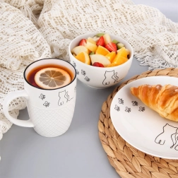 Elegantný hrnček z kvalitného porcelánu v bielej farbe zdobí jemná grafika mačky, ktorá dodá stolovaniu hravý akcent. Vďaka objemu 380 ml je ideálny na veľkú rannú kávu aj popoludňajší čaj. Klasický tvar a príjemne tvarované uško zaručujú pohodlné držanie a každodenný komfort.