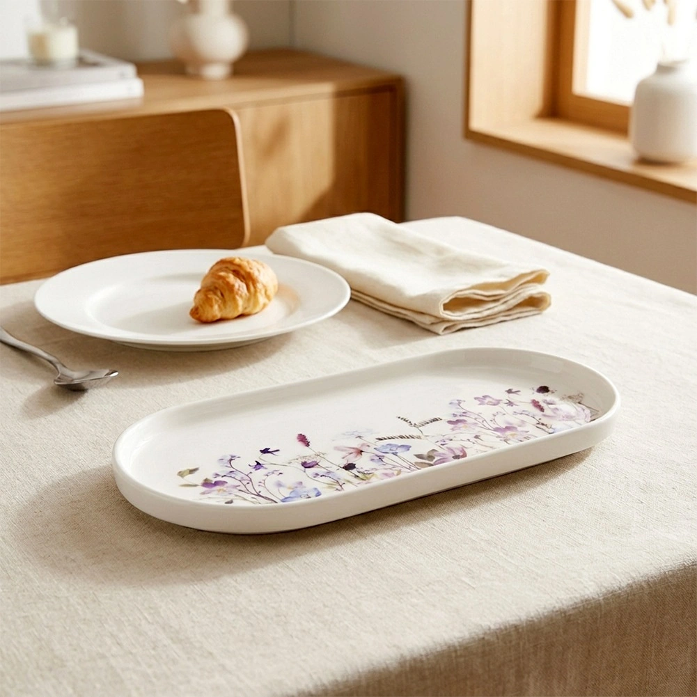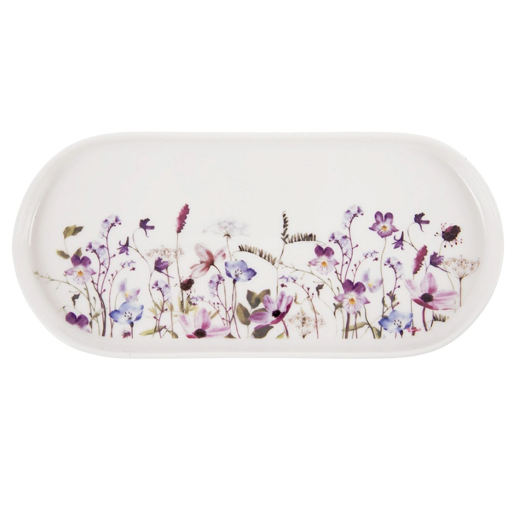 Elegantný oválny porcelánový tanier s motívom lúčnych kvetov je ideálny na servírovanie predjedál, dezertov či chuťoviek. Vďaka rozmerom 25 × 12 cm a mierne zvýšenému okraju pôsobí štýlovo a zároveň je praktický. Vhodný do umývačky aj mikrovlnky, kvalitný porcelán a moderný kvetinový dizajn z neho robia skvelú voľbu na každý deň aj slávnostný stôl.