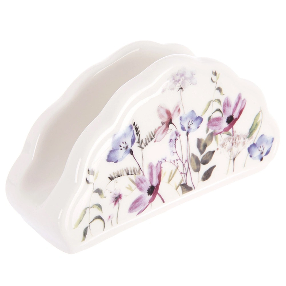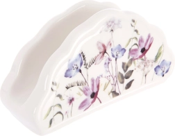 Objavte štýlový a praktický doplnok pre vaše stolovanie. Porcelánový stojan na servítky LOUKA v bielej glazúre s jemnou potlačou lúčnych kvetov dodá vášmu stolu svieži a elegantný vzhľad. Vďaka stabilnej konštrukcii drží servítky vzpriamene a po ruke, či už servírujete rodinný obed, grilovanie na záhrade alebo pohostenie pre hostí.