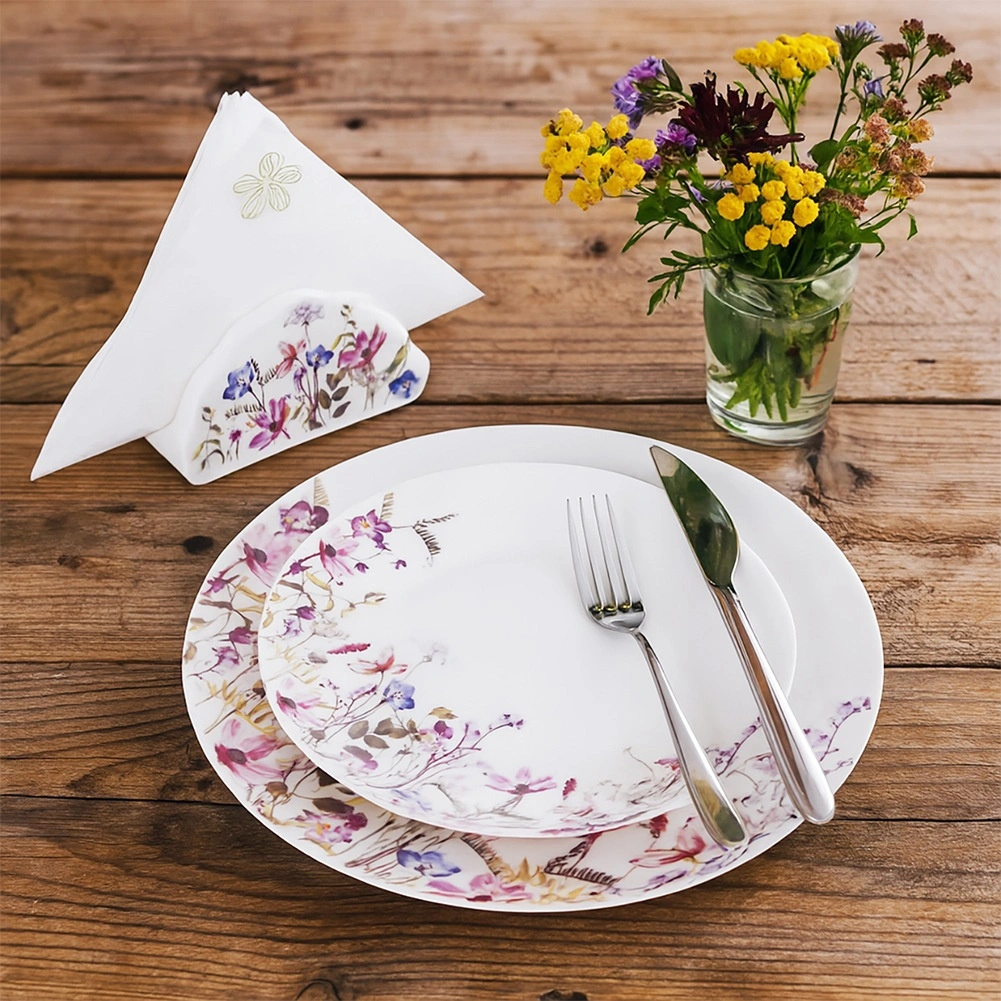 Biely porcelán s pastelovým motívom lúčnych kvetov dodá prestieraniu pôvab a sviežosť – skvele ladí s modernými aj vidieckymi interiérmi.