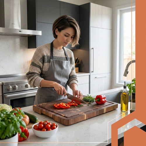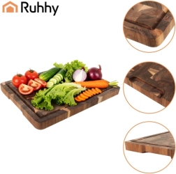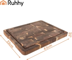 Robustná krájacia doska z akáciového dreva s rozmermi 43 × 33 × 3 cm prináša kombináciu stability, odolnosti voči vlhkosti a elegantného vzhľadu. Vďaka konštrukcii end‑grain je šetrná k nožom, lepšie maskuje rezy a vydrží intenzívne používanie. Praktický obvodový žliabok na šťavy a integrované úchyty uľahčujú prácu aj servírovanie.