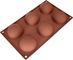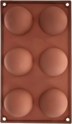 Táto hnedá silikónová forma so šiestimi polguľovitými kavitetami je ideálna na prípravu dezertov na studeno aj pečených korpusov. Vďaka nepriľnavému povrchu sa dezerty ľahko vyberajú bez poškodenia tvaru a forma neabsorbuje pachy ani chute.