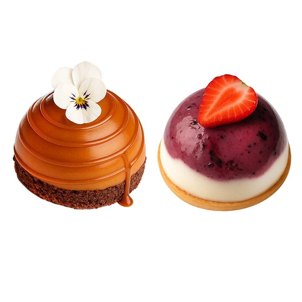 Praktická silikónová forma so šiestimi dutinami v tvare polgule vám umožní pripraviť elegantné dezerty, pralinky, semifreddo, zmrzlinu aj minitortičky s dokonale hladkým povrchom. Je flexibilná, nepriľnavá a ľahko sa vyklápa. Odoláva teplotám od −40 °C do +200 °C, takže ju môžete použiť do rúry, mikrovlnky aj mrazničky a po použití ju jednoducho vložiť do umývačky riadu.