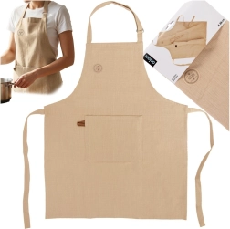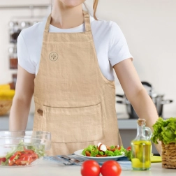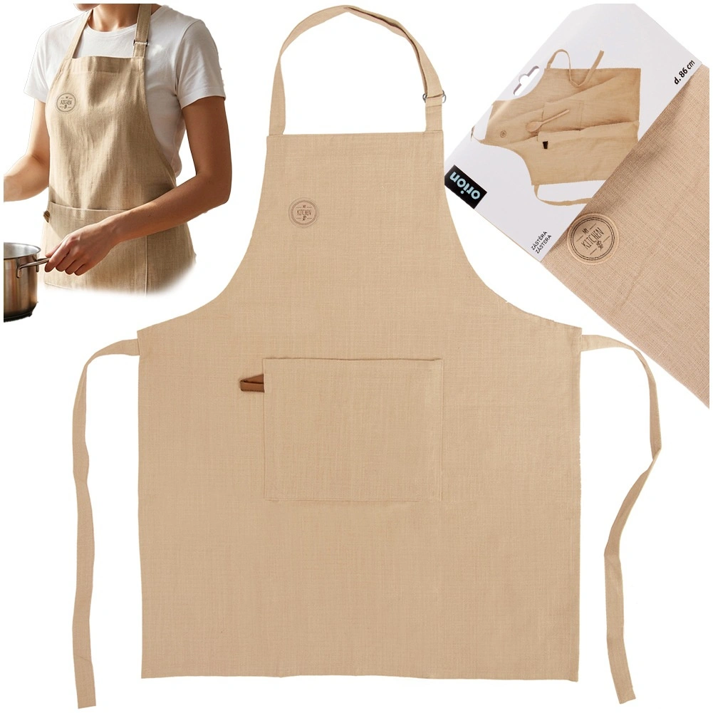 Praktické veľké vrecko vpredu pojme varešky, utierku alebo lístok s receptom, takže budete mať všetko po ruke. Prírodná bavlnená tkanina je príjemná na dotyk, priedušná a ľahko sa udržiava – možno prať na 40 °C.