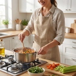 Univerzálny strih a príjemný prírodný materiál zaručujú komfort pri každodennom varení, pečení aj tvorení. Jednoduchá údržba praním do 40 °C uľahčí dlhodobé používanie a udržanie čistoty.