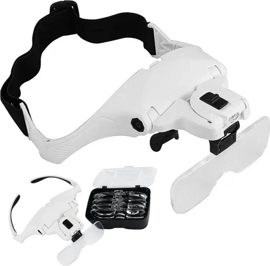 Konštrukcia z ABS plastu a akrylátových šošoviek je odolná a zároveň komfortná na dlhšie používanie. Nastavenie sklonu okuliarov, šošoviek aj svetla zaisťuje ergonómiu a presné zacielenie. Napájanie z bežne dostupných AAA batérií umožňuje mobilné použitie kdekoľvek.