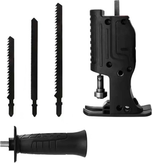 Premeňte bežnú vŕtačku na praktickú priamočiaru pílu. Tento univerzálny nástavec sa upína do skľučovadla ako klasický vrták s priemerom 7 mm, má pohodlnú bočnú rukoväť pre stabilné vedenie rezu a ochranný kryt pre bezpečnejšiu prácu. V balení nájdete 3 rôzne pílové plátky na rôzne typy rezov.