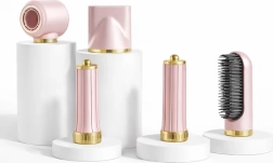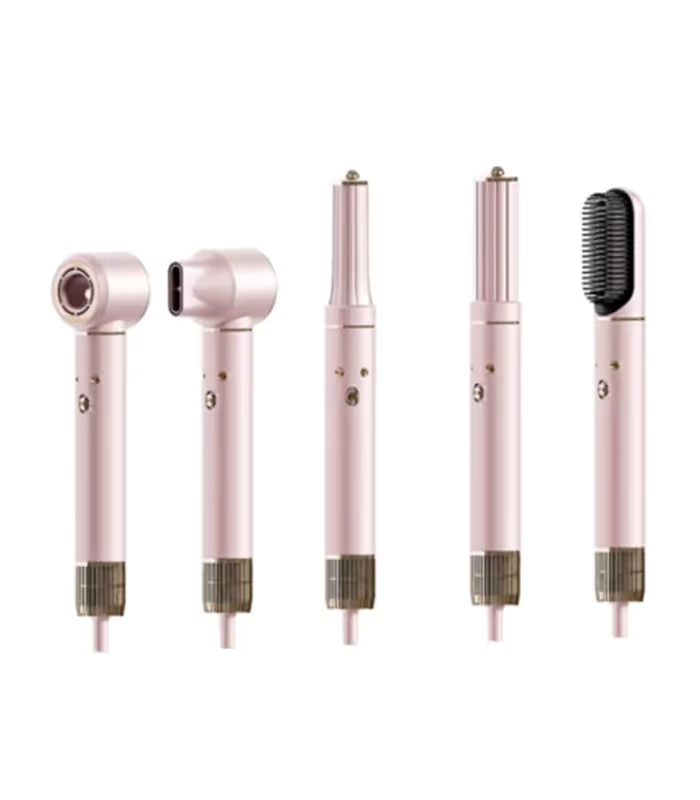 Rýchla a šetrná úprava vlasov každý deň: ružový multifunkčný fén 5v1 kombinuje sušenie, kulmovanie a uhladzovanie v jednom zariadení. Vďaka vymeniteľným nástavcom, ionizácii, 3 úrovniam teploty a 3 rýchlostiam prúdenia vzduchu vytvoríte hladké, lesklé vlasy bez krepatenia. Studený vzduch účes zafixuje a dodá mu profesionálny finiš.