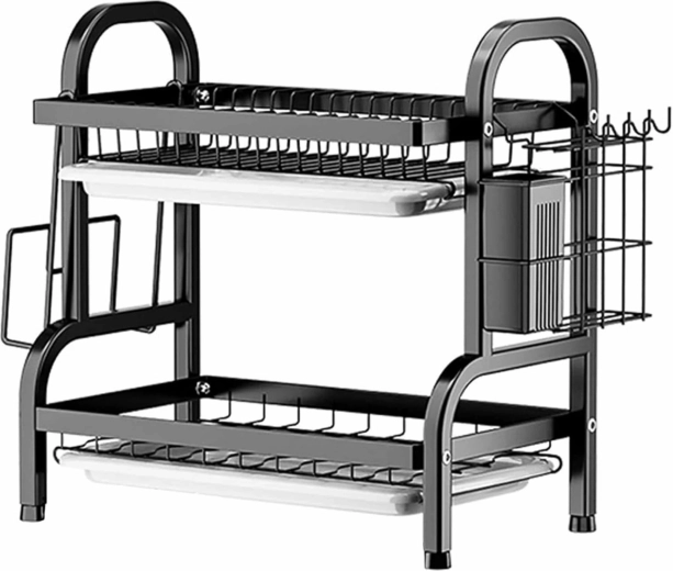 Tento kompaktný a všestranný 2-poschodový odkvapkávač na riad je ideálny do malých aj veľkých kuchýň. Kombinuje premyslené usporiadanie s moderným čiernym dizajnom a poskytuje dostatok miesta pre taniere, misky aj príbor. Všetky časti možno jednoducho rozobrať a umyť v umývačke, takže údržba je maximálne pohodlná.
