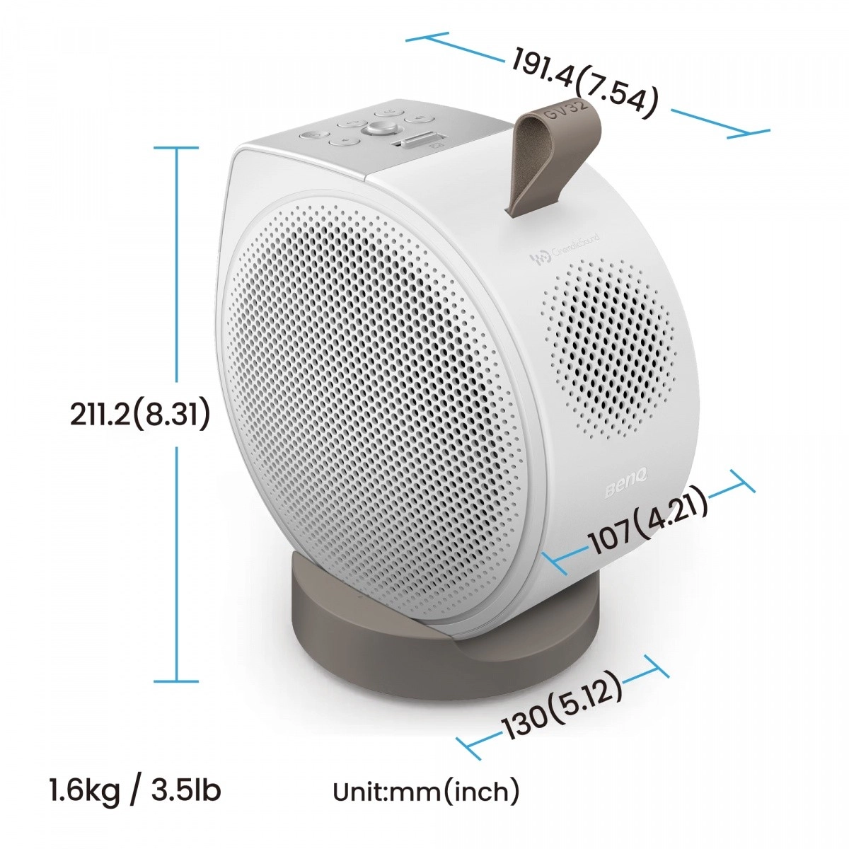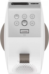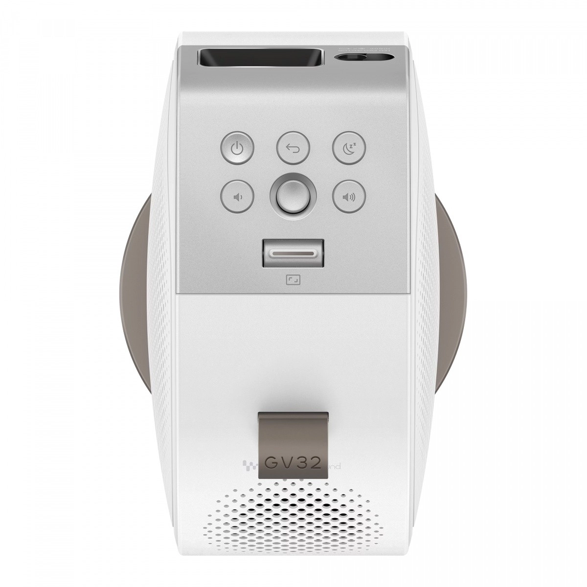 BenQ GV32 je štýlový a prenosný projektor, ktorý kombinuje ostrý obraz Full HD (1920 × 1080) s výkonným zvukom 2.1 s výkonom 18 W. Vďaka technológii DLP a LED svetelnému zdroju poskytuje stabilné farby, vysoký kontrast 100 000:1 a až 30 000 hodín prevádzky v ECO režime.