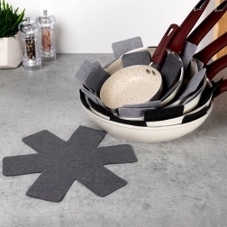 Sada šiestich filcových chráničov je ideálna na každodenné domáce použitie. Vložky jednoducho umiestnite medzi panvice či hrnce a tým účinne ochránite ich povrch pri stohovaní aj prenášaní. Vďaka trom rôznym priemerom ľahko prispôsobíte vložky rôznym veľkostiam riadu.