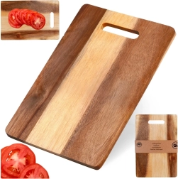 Doprajte svojej kuchyni kvalitnú dosku z akáciového dreva, ktorá vyniká tvrdosťou, odolnosťou a krásnou prírodnou kresbou. Rozmery 30 × 20 cm a hrúbka 1 cm zabezpečujú stabilnú a pohodlnú plochu na krájanie mäsa, zeleniny, ovocia či pečiva. Integrovaný úchyt uľahčuje prenášanie a zároveň umožní zavesenie.