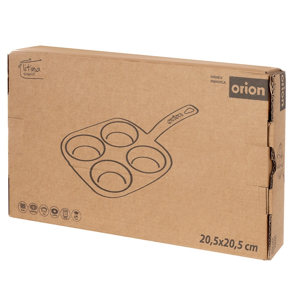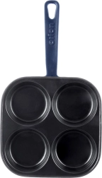 Praktická štvorcová panvica z liatiny so 4 okrúhlymi formami (Ø 9 cm) pre dokonale tvarované vajcia či lievance. Smaltovaný povrch uľahčuje vyprážanie aj čistenie, liatina rovnomerne vedie teplo a dlho ho drží. Vhodná na plyn, elektrinu, keramiku, indukciu aj do rúry, odolná voči vysokým teplotám a vhodná do umývačky.