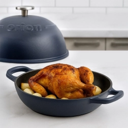 Univerzálna smaltovaná liatinová forma s vekom na pečenie chleba, mäsa, zeleniny aj sladkých dezertov. Dokonale rozvádza teplo, dlho drží teplotu a vďaka ťažkému veku umožňuje pečenie aj dusenie so šťavnatým výsledkom. Vhodná na všetky typy sporákov vrátane indukcie aj do rúry až do 250 °C. Overená kvalita značky ORION.