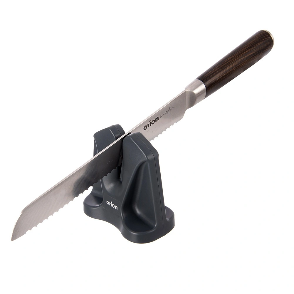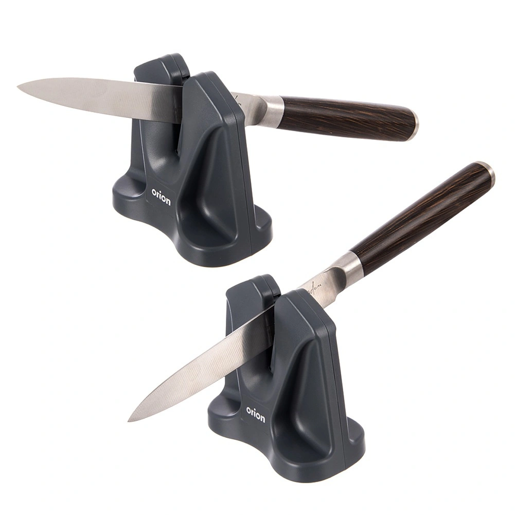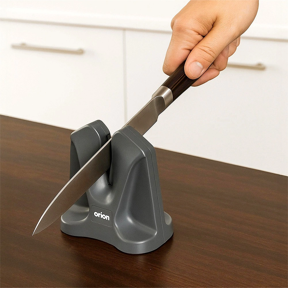 Odolné telo zo sivého plastu a karbidové brúsne prvky poskytujú dlhú životnosť a spoľahlivý výkon. Kompaktné rozmery 9,5 × 5,5 × 9,5 cm uľahčujú skladovanie a umožňujú mať brúsik vždy po ruke.