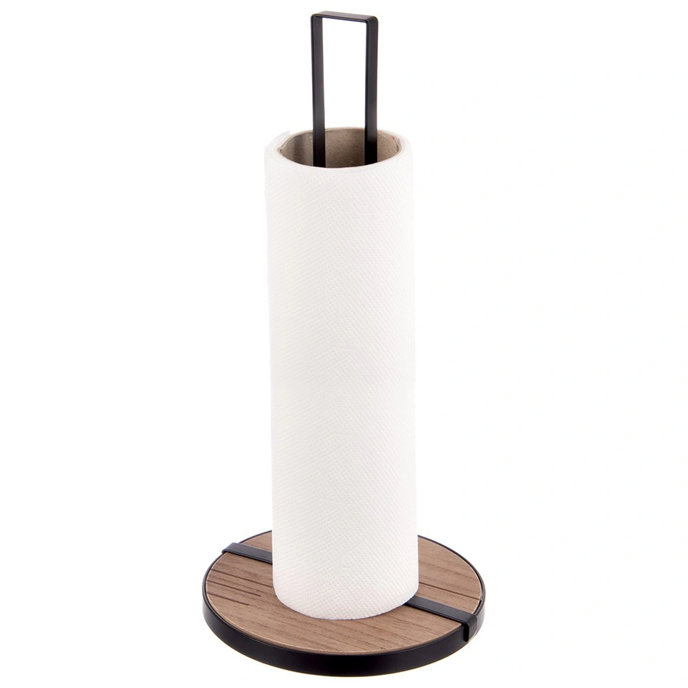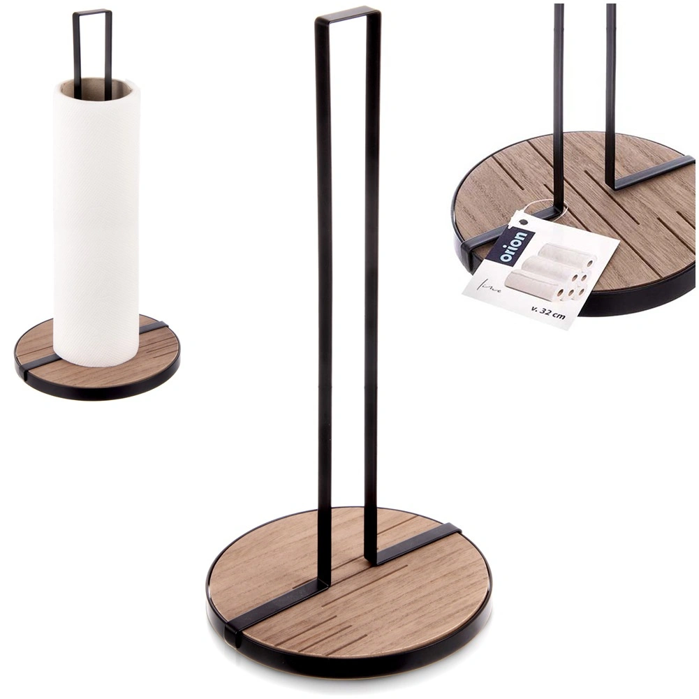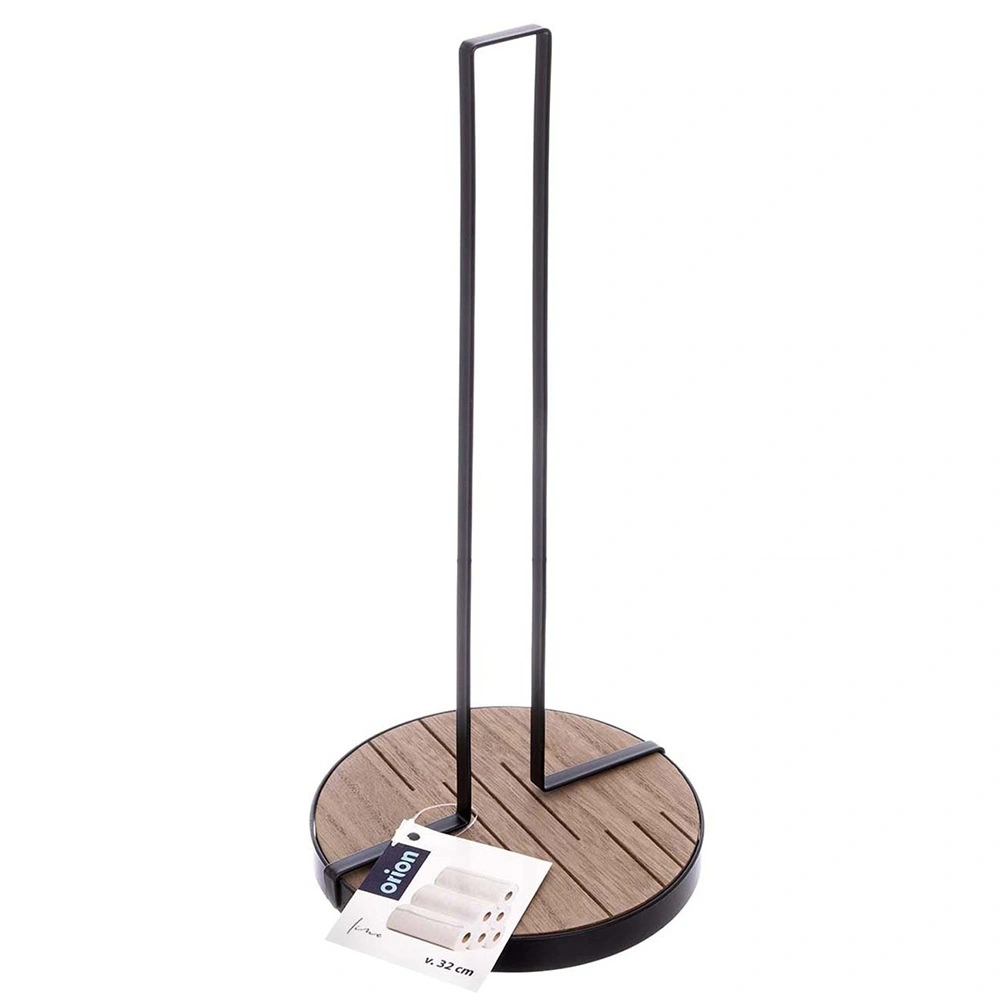 Stojan na papierové utierky LINE s rozmermi 15,5 × 15,5 × 32,5 cm je praktický pomocník na každodenné varenie aj upratovanie. Robustná kovová konštrukcia v čiernej farbe a kruhová drevená základňa z MDF zabezpečujú výbornú stabilitu a dlhú životnosť.