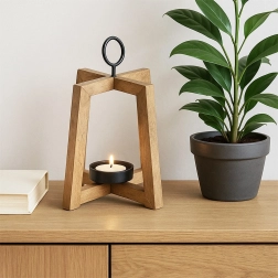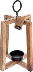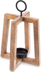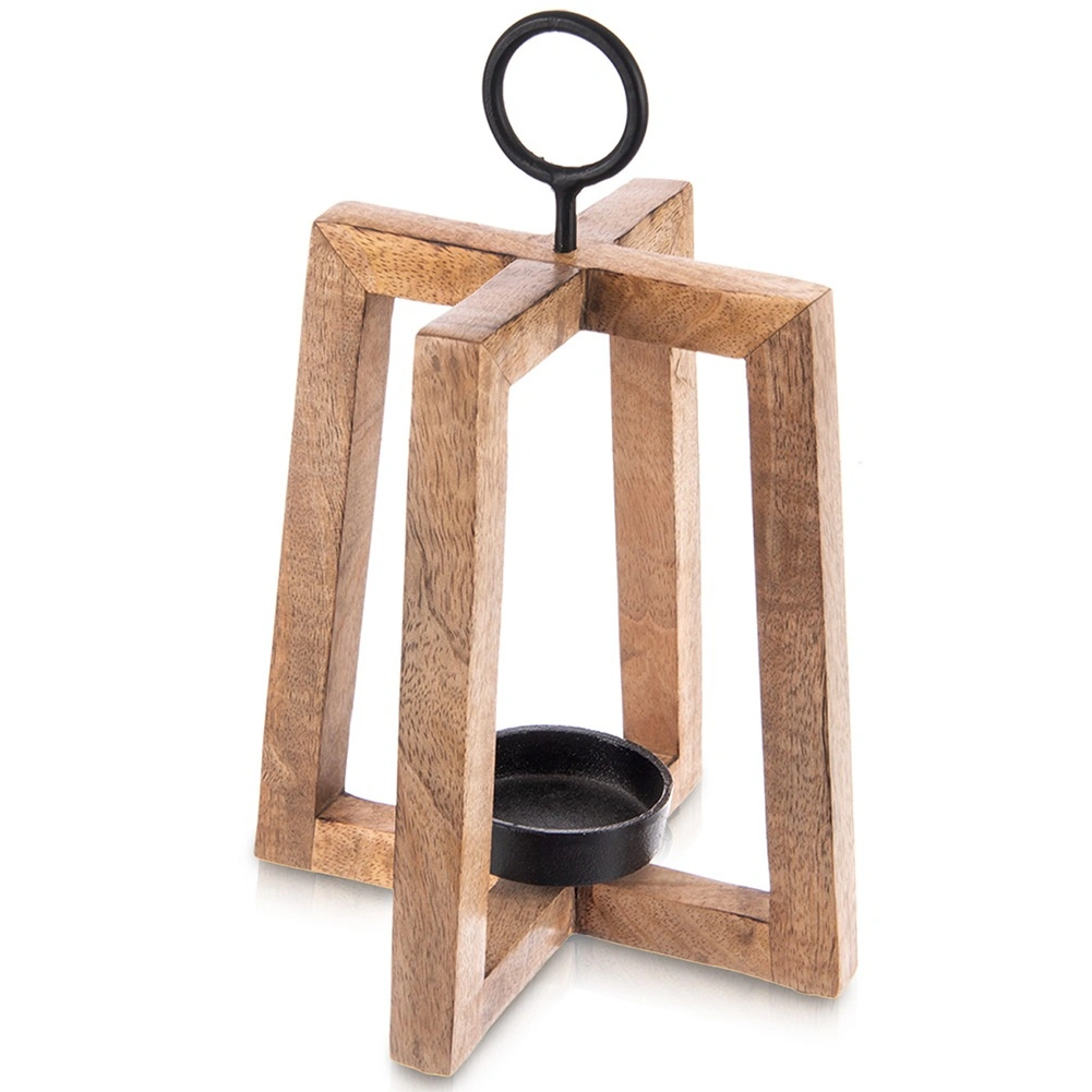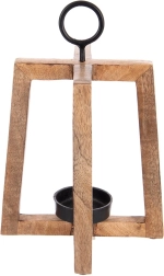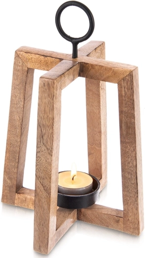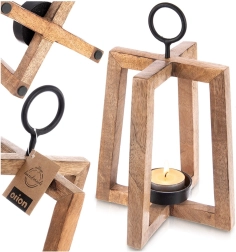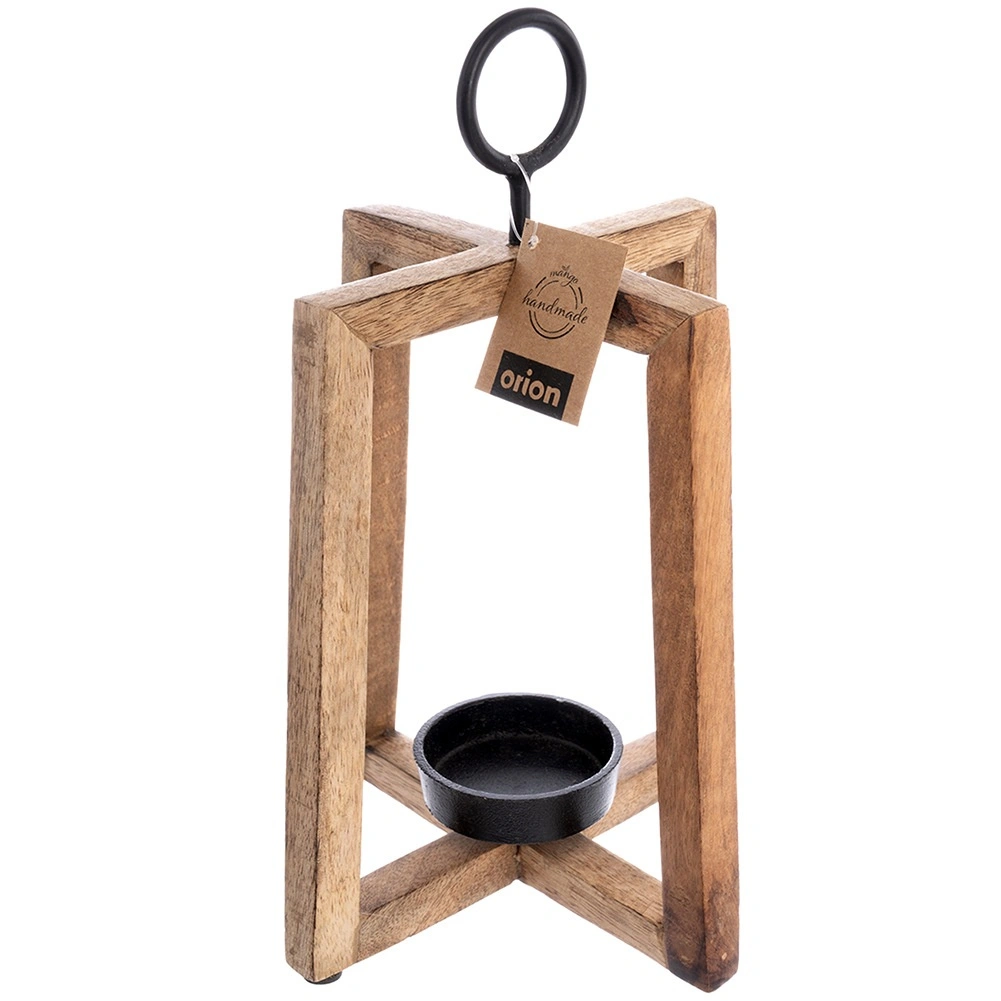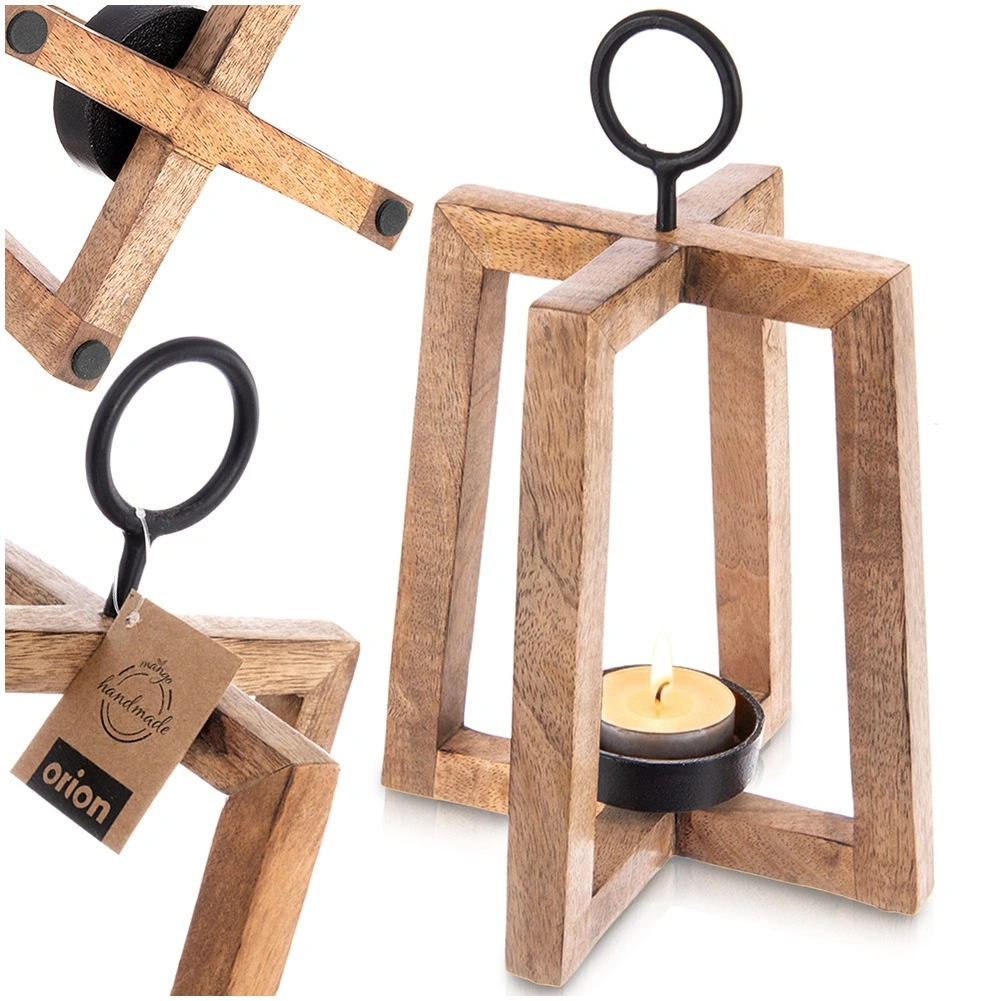 Dizajnový svietnik s otvoreným rámom vyniká teplým odtieňom a kresbou mangového dreva. Skvele doplní moderné, škandinávske aj rustikálne interiéry a vďaka kovovému krúžku ho môžete tiež jednoducho zavesiť pri vchode, na balkóne či terase.