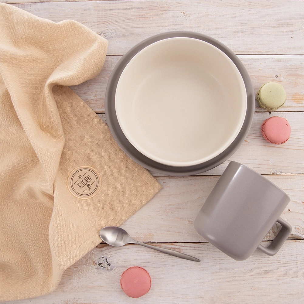 Neutrálna béžová farba s decentnou nášivkou „My Kitchen“ doplní akýkoľvek kuchynský štýl a poslúži každý deň.