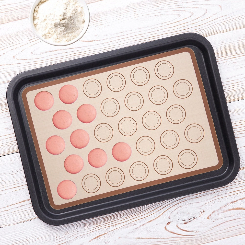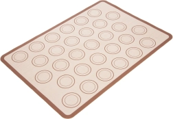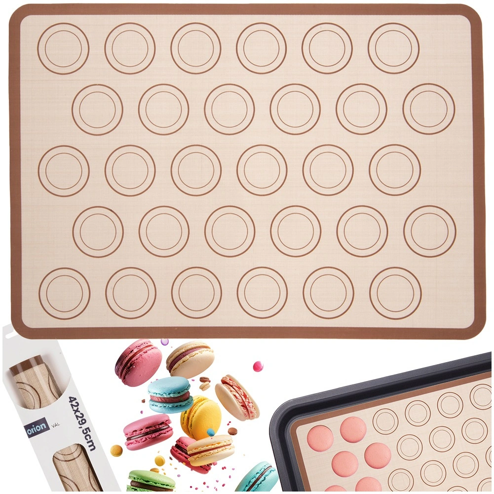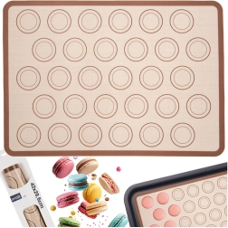 Táto silikónová podložka uľahčí prípravu francúzskych makróniek a ďalších okrúhlych dezertov. Vďaka 30 vyznačeným kruhom v dvoch veľkostiach ľahko udržíte jednotnú veľkosť aj rozostupy. Nepriľnavý povrch zabezpečuje ľahké uvoľnenie upečených kúskov a čistejšiu prácu bez lepivého cesta.