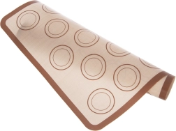 Praktická silikónová podložka s potlačou kruhov na rovnomerné tvarovanie makróniek, venčekov a sušienok. Ponúka nepriľnavý povrch, dve veľkosti vodiacich kruhov (3,2 a 4,5 cm) a odolnosť od -40 °C do +200 °C na pečenie, mrazenie aj ohrev v mikrovlnke.