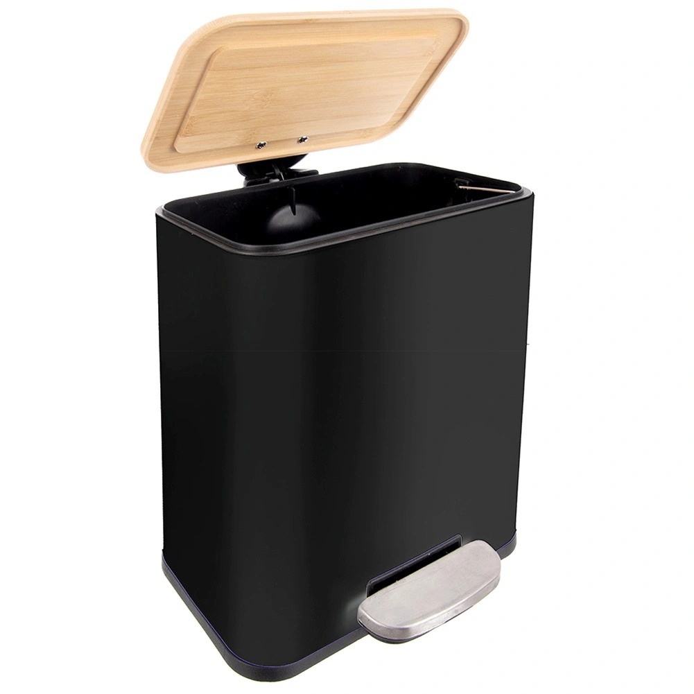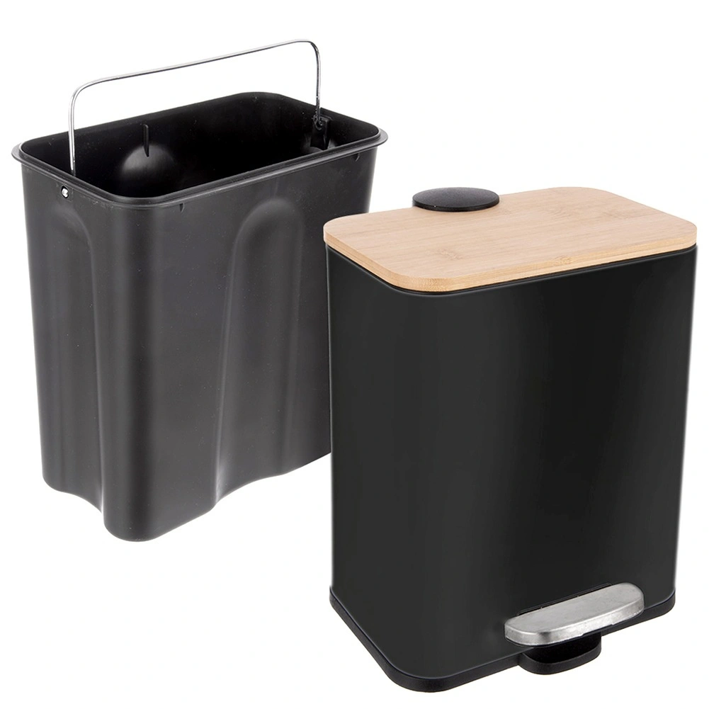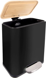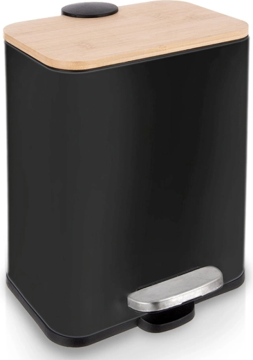 Kompaktný a štýlový odpadkový kôš s objemom 5 l s pedálovým otváraním pre maximálne hygienické používanie. Má pevné kovové telo, bambusové veko, vyberateľnú vnútornú nádobu a tiché dovieranie. Vďaka úzkemu tvaru sa skvele zmestí do menších priestorov v kuchyni, kúpeľni či kancelárii.