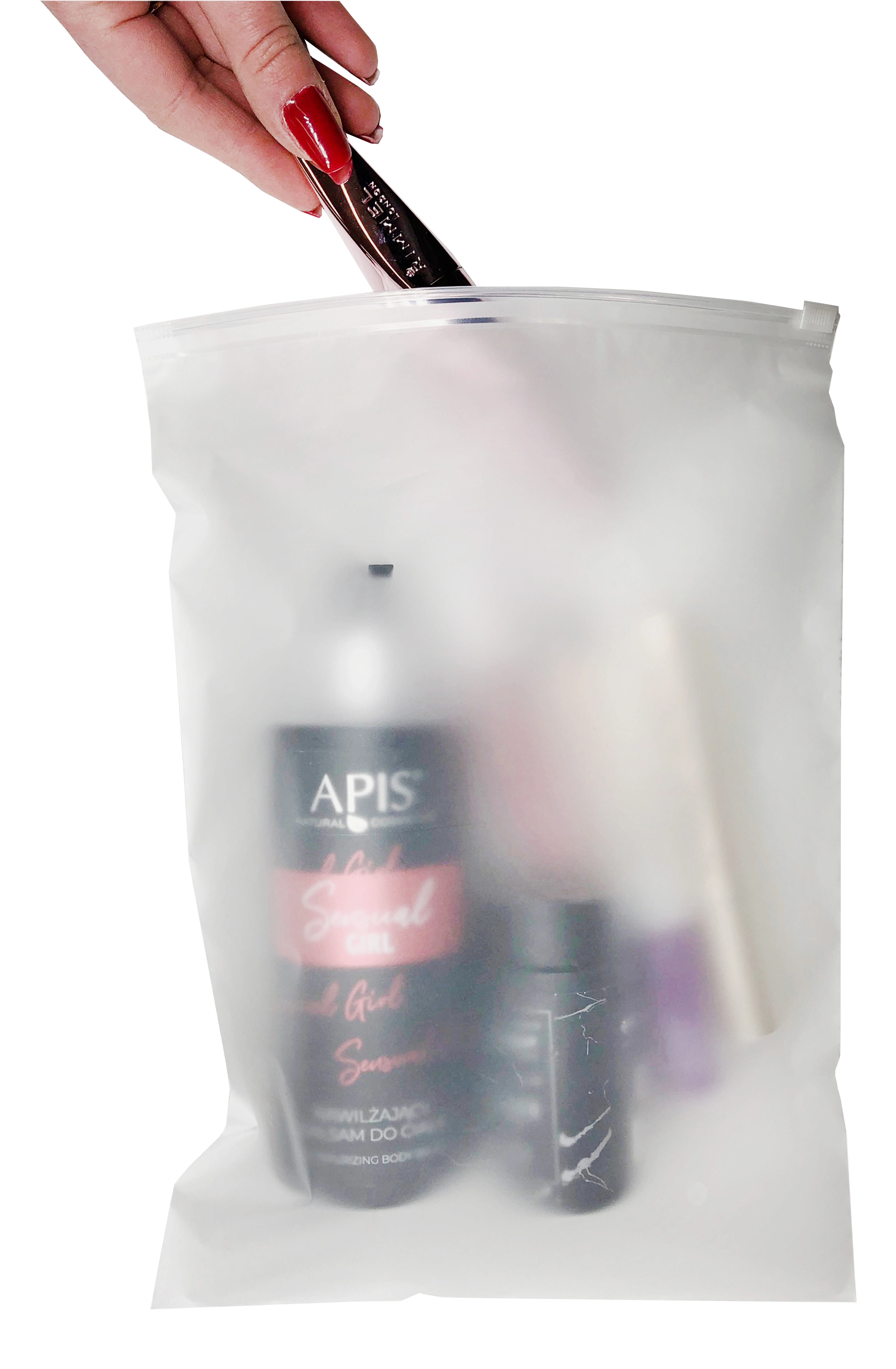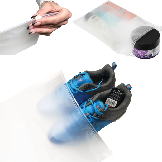 Praktické matné zip sáčky s rozmerom 250 × 350 mm na prehľadné uloženie a cestovanie. Vďaka opätovne uzatvárateľnému zipu ochránia obsah pred vlhkosťou a prachom, polomatný materiál zabezpečuje čiastočnú priehľadnosť a súkromie. Ideálne na kozmetiku, toaletné potreby, obuv aj dokumenty. Balenie obsahuje 50 ks.