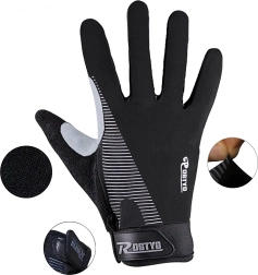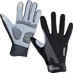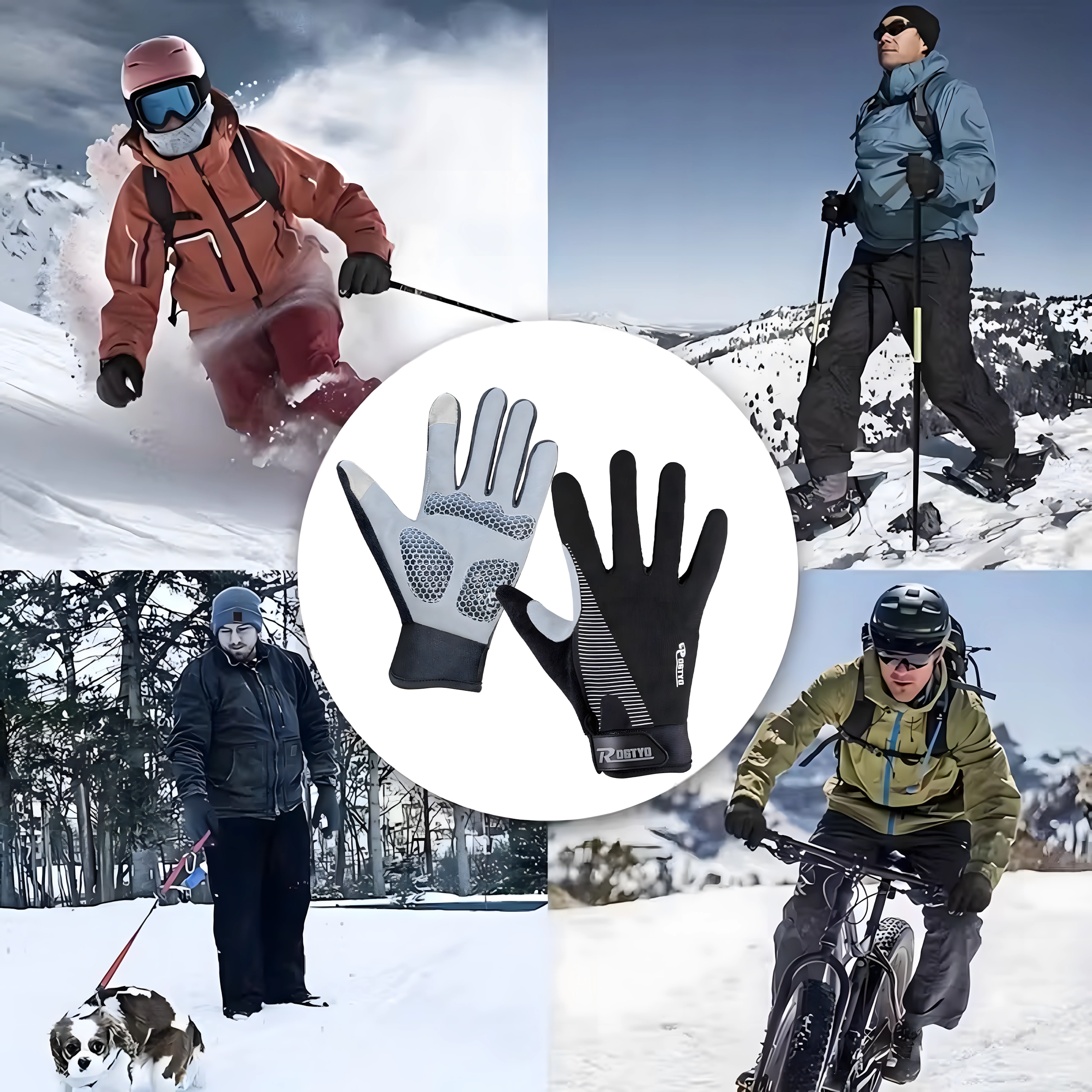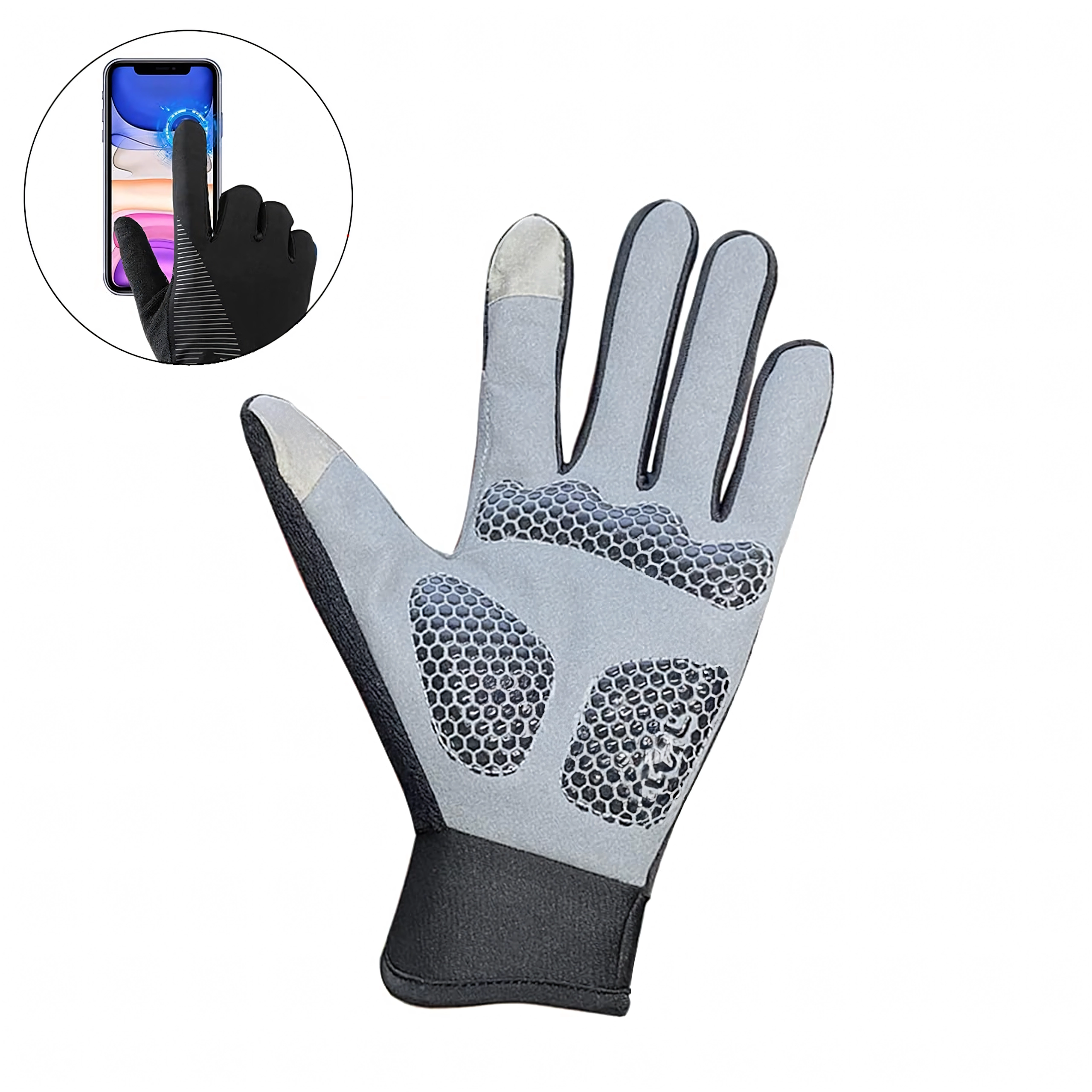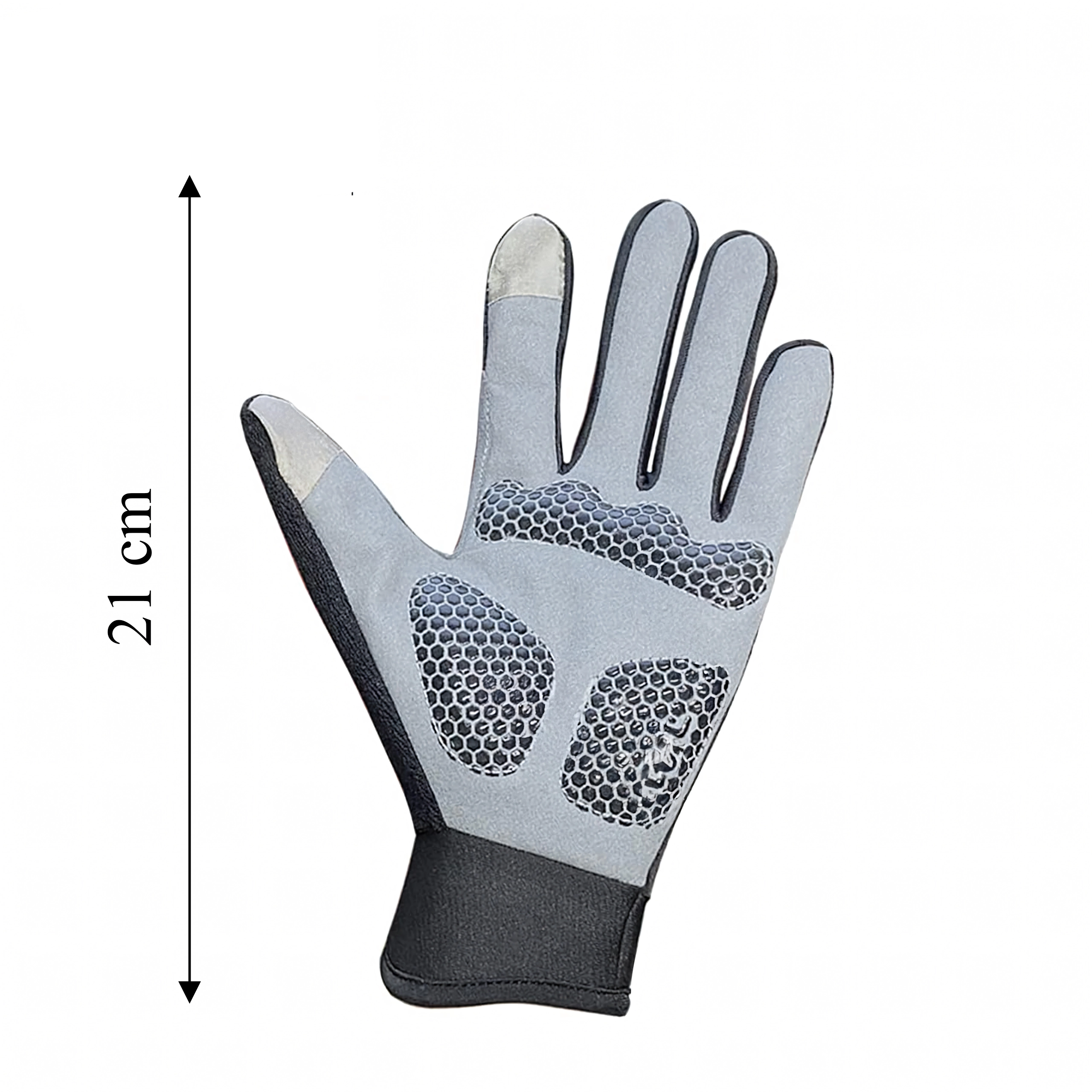 Univerzálne zimné cyklistické rukavice na bicykel, beh aj outdoor. Ponúkajú celoprstové krytie, dotykové koncovky prstov na ovládanie telefónu, protišmykové dlane a hrejivý, priedušný materiál pre pohodlie a istý úchop v chladnom počasí.