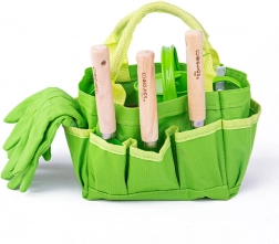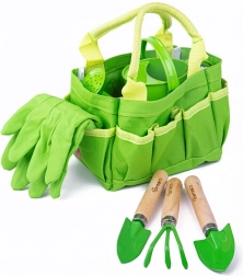 Tento zelený záhradnícky set pre deti od BIGJIGS TOYS podporuje učenie hrou a lásku k prírode. Plátená taška s motívom lienok udrží všetko vybavenie prehľadne poruke, zatiaľ čo kvalitné drevené madlá a kovové nadstavce náradia zabezpečujú bezpečné a odolné používanie. Ideálny na prvé sadenie, presádzanie a zalievanie s rodičmi.
