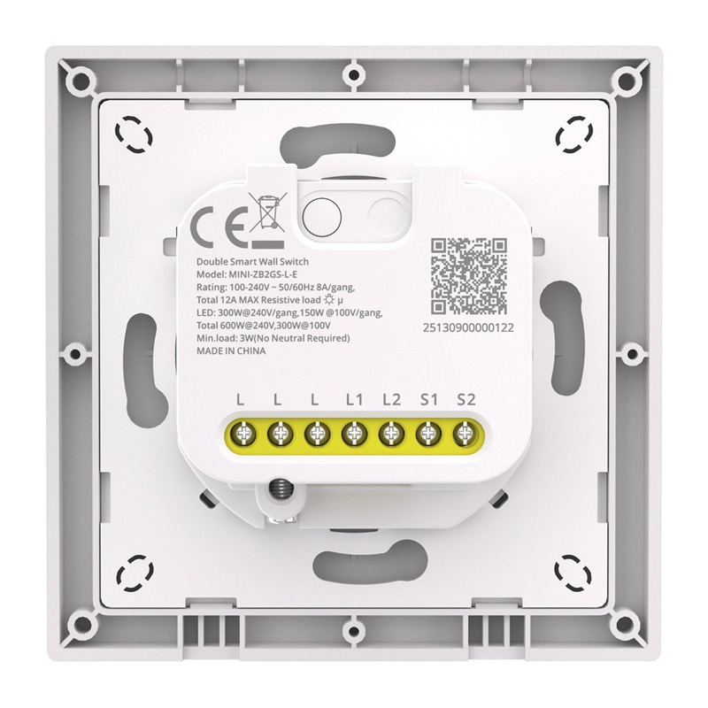 Dva kanály, inteligentné scény a plánovanie – ovládajte dva svetelné okruhy samostatne, nastavte plány, časovače a scenáre. Funkcia Power‑On State určí správanie svetiel po výpadku napájania (ponechať vypnuté, zapnúť s oneskorením a pod.). ZigBee Binding zabezpečuje rýchle lokálne ovládanie bez cloudu v ekosystéme Home Assistant (ZHA, Zigbee2MQTT).