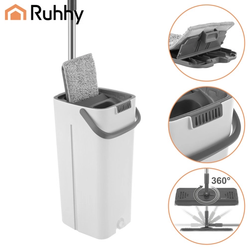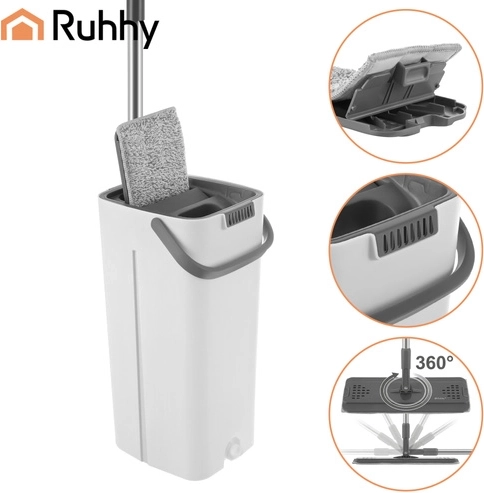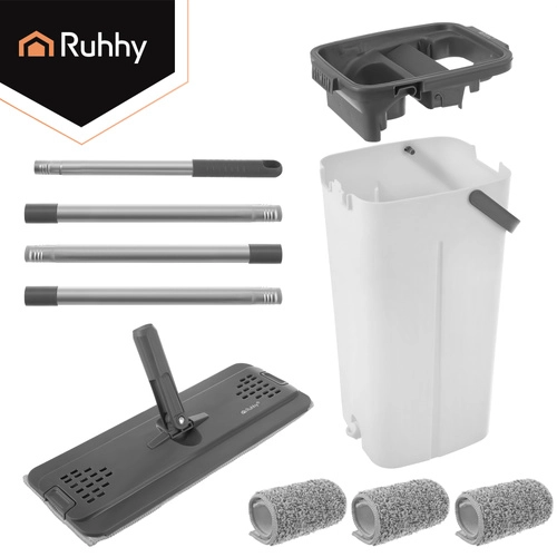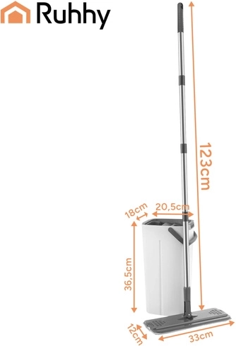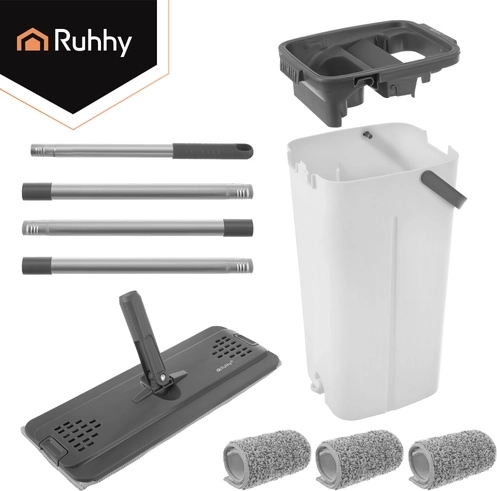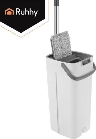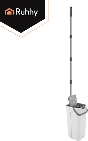 Už žiadne umývanie v zakalenej vode. Dvojkomorový systém RUHHY zaručuje, že podlahu vždy vytierate čerstvou čistou vodou, zatiaľ čo nečistoty zostávajú v oddelenej komore. Integrovaný bezkontaktný žmýkací mechanizmus rýchlo odstráni prebytočnú vodu aj vlasy a prach z návleku, takže podlaha schne rýchlejšie a bez šmúh.
