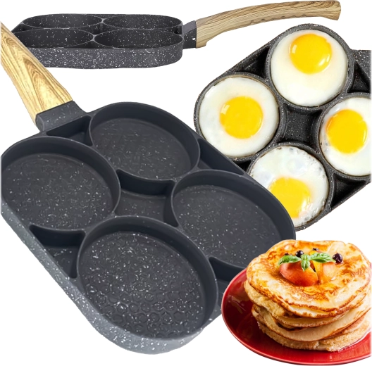Táto štvordielna panvica je ideálna na rýchlu a vyváženú prípravu raňajok aj desiat. Oddelené komory udržia porcie krásne okrúhle a rovnomerné, zatiaľ čo štruktúrovaný nepriľnavý povrch zaistí ľahké obracanie bez pripaľovania a jednoduché čistenie.