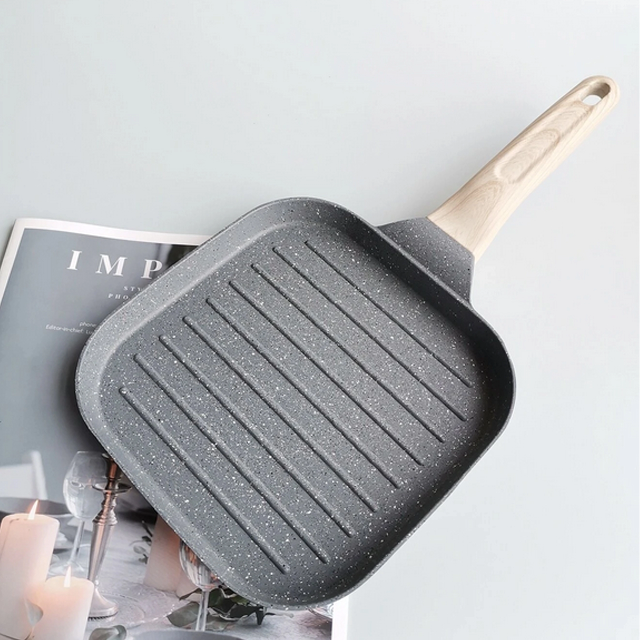 Táto univerzálna grilovacia panvica je ideálna na steaky, ryby aj zeleninu. Robustný štvorcový tvar ponúka veľkú plochu na smaženie, zatiaľ čo vyvýšené ryhovanie zabezpečuje intenzívny kontakt s teplom a krásne grilovacie pruhy. Nepriľnavý povrch umožňuje varenie s menším množstvom oleja a uľahčuje údržbu.