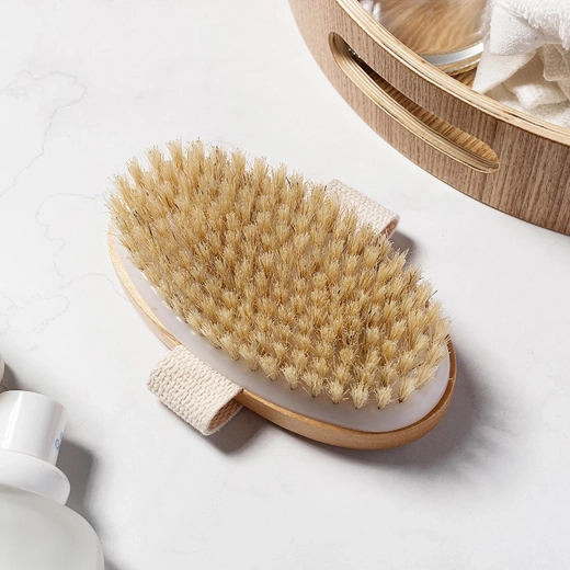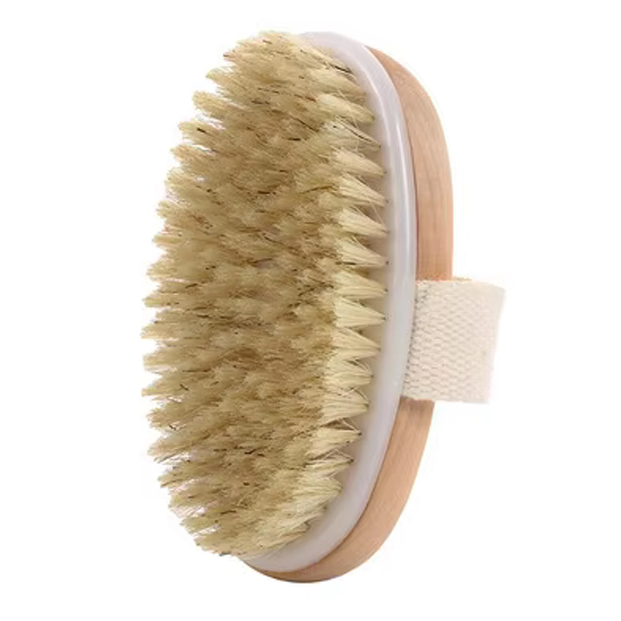 Táto oválna kefa s prírodnými štetinami je navrhnutá na efektívnu starostlivosť o pokožku tela. Pri suchom kefovaní podporuje prekrvenie, zlepšuje lymfatickú drenáž a viditeľne vyhladzuje textúru pokožky. Pri mokrom použití jemne exfoliuje a pripraví kožu na ďalšiu starostlivosť, aby lepšie vstrebávala krémy a oleje.